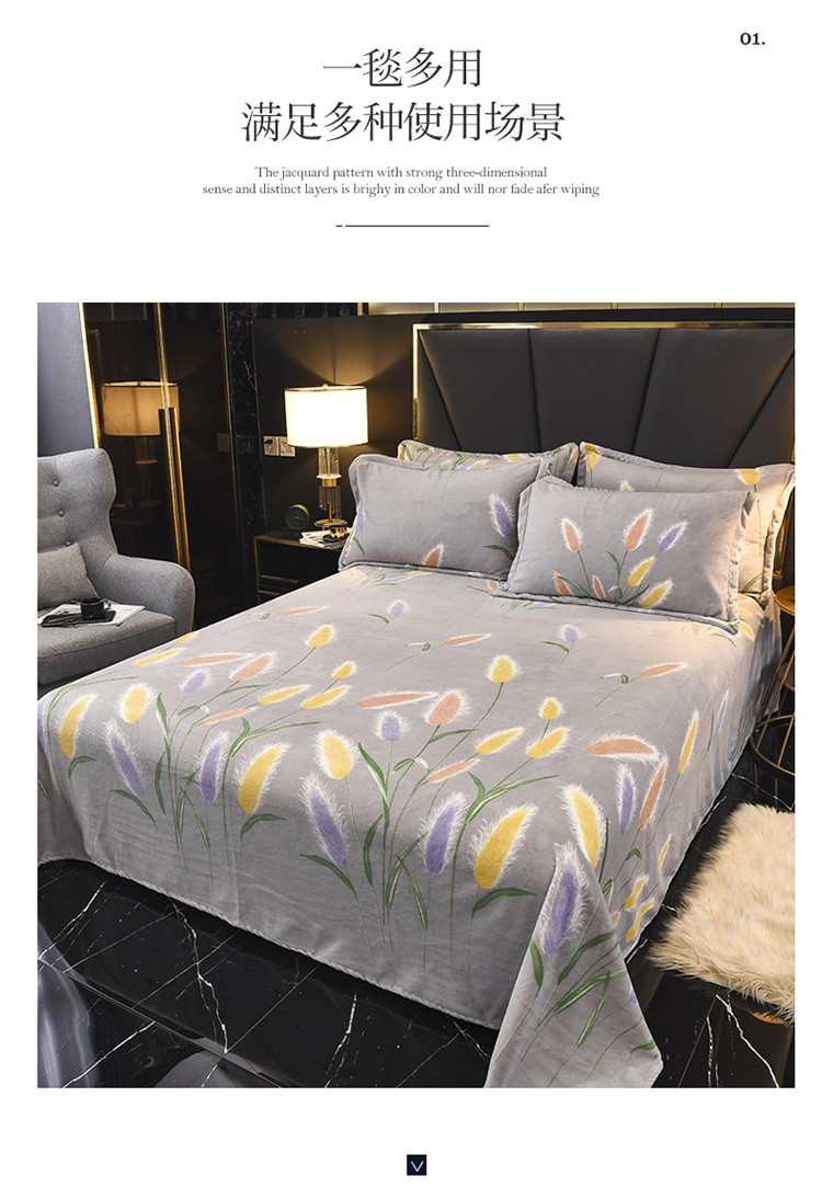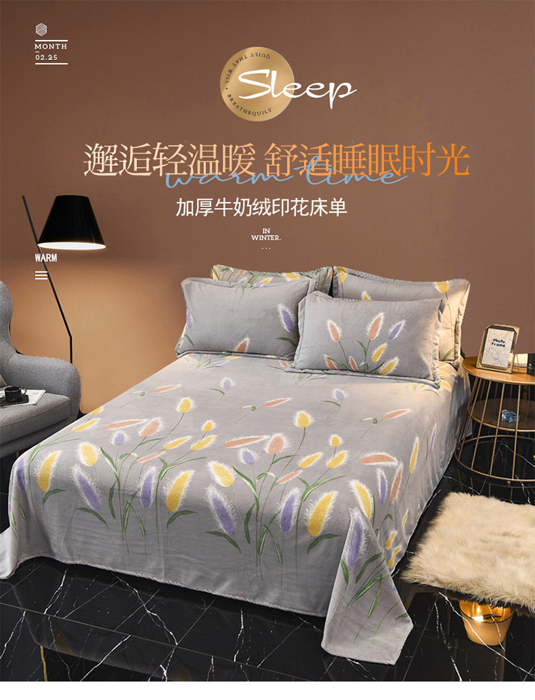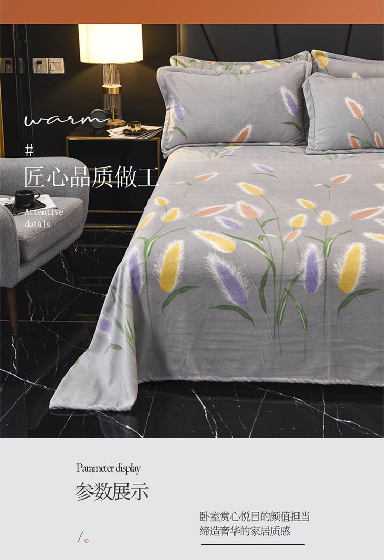 商品名称:锦罗绣 2021新款牛奶绒印花单品床单 狼尾草