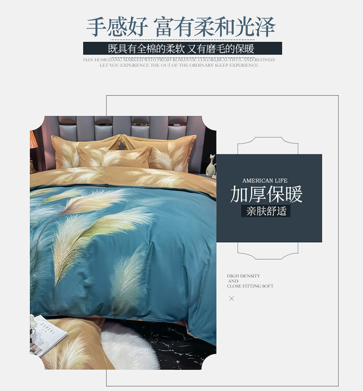当前位置: 91家纺网 > 商品网购 > 床品套件 > 四件套 > 普通磨毛四件套 > 金爱家 2021新款大版磨毛条格简约四件套金穗时光