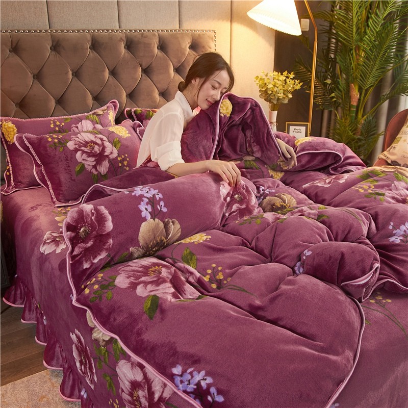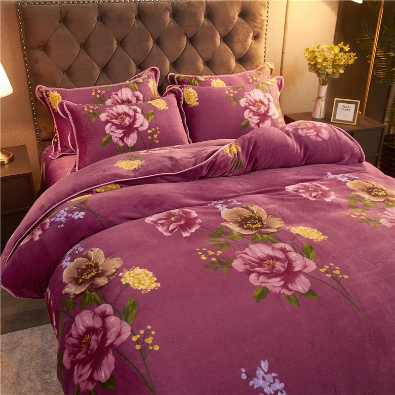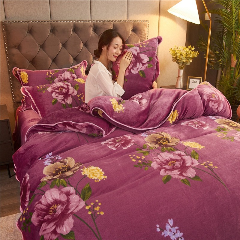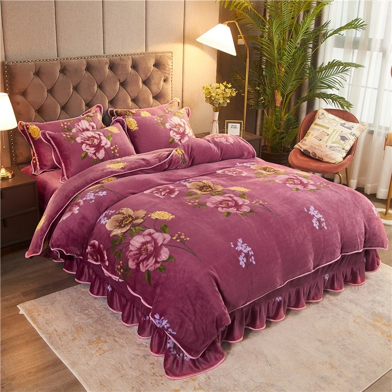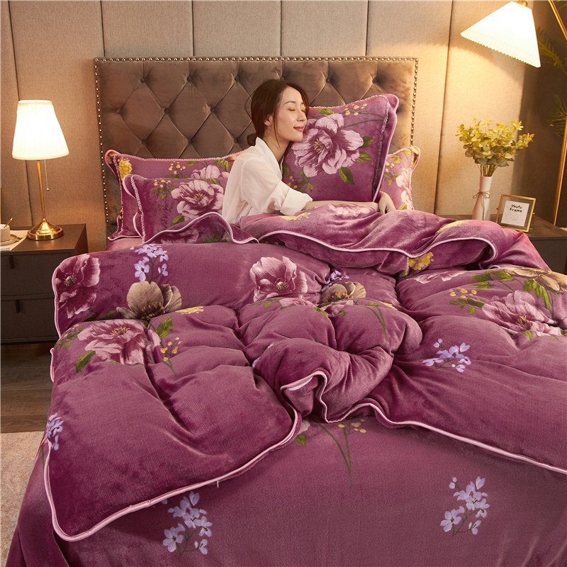 爱洛家纺2021新款金貂绒四件套 浓浓情意豆沙色