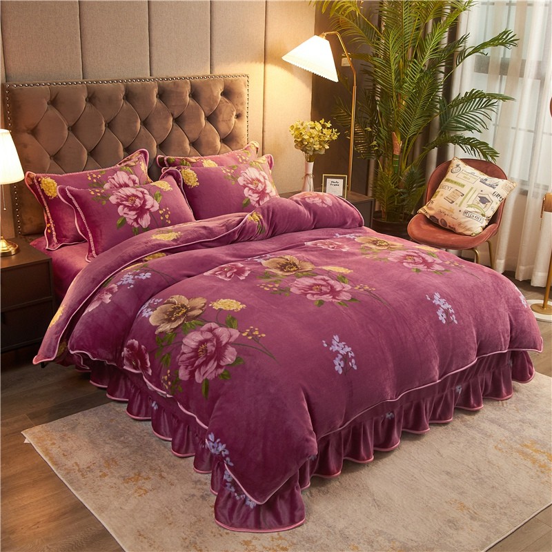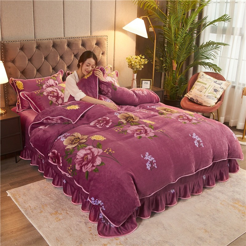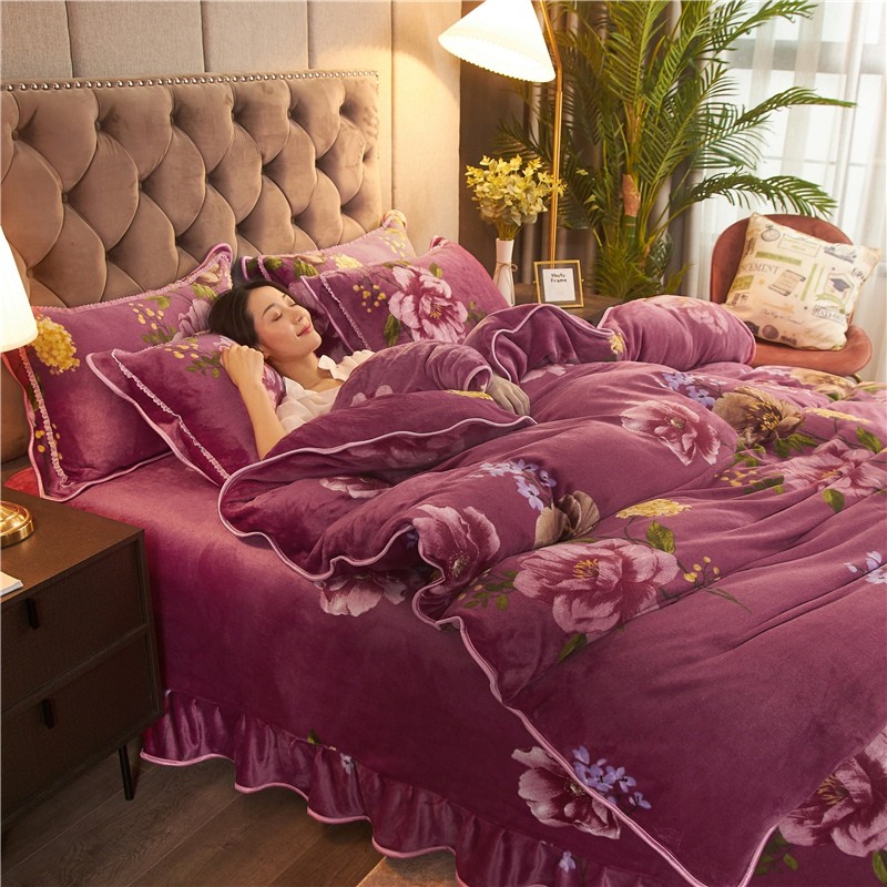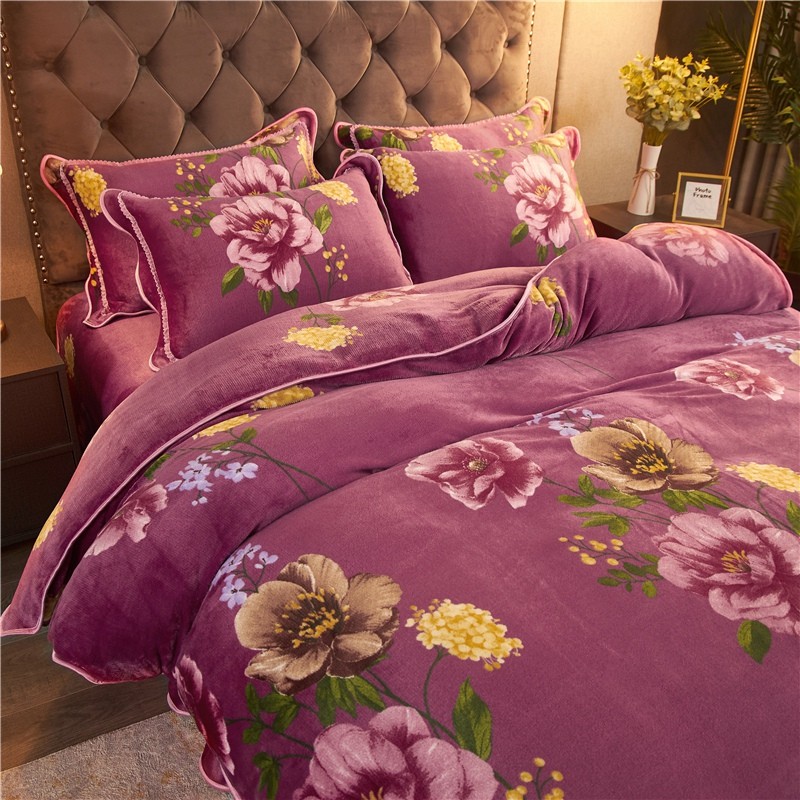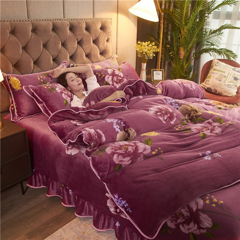 商品名称:爱洛家纺2021新款金貂绒四件套 浓浓情意豆沙色