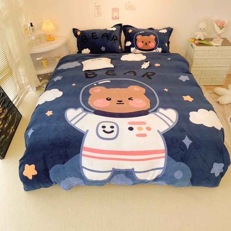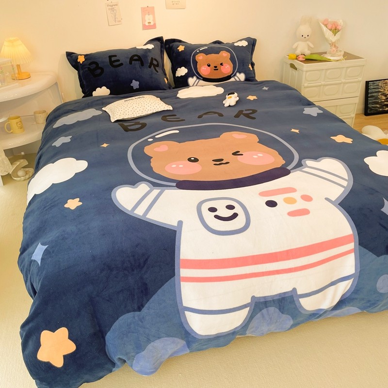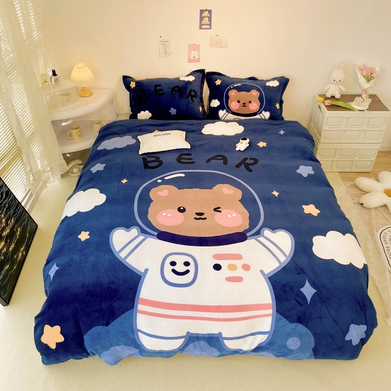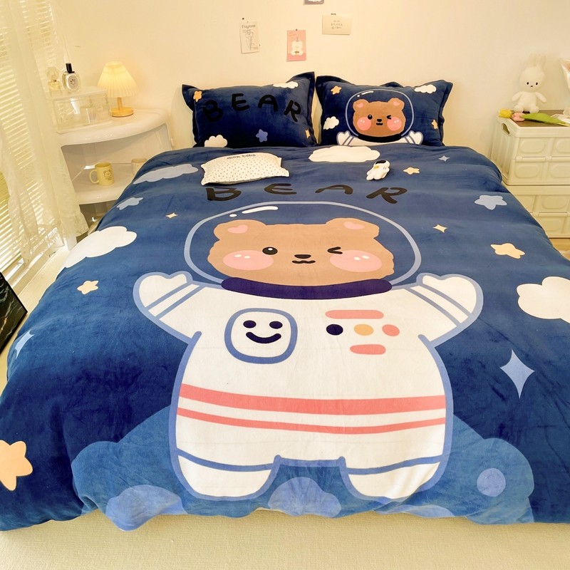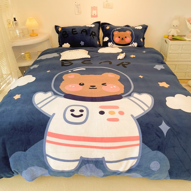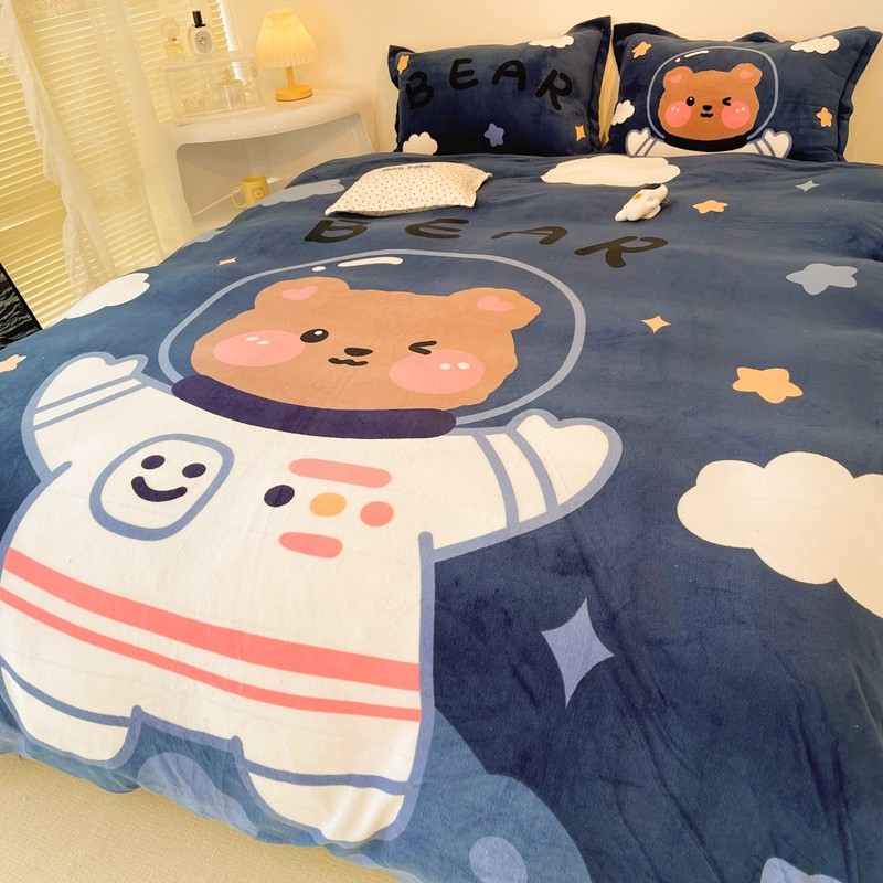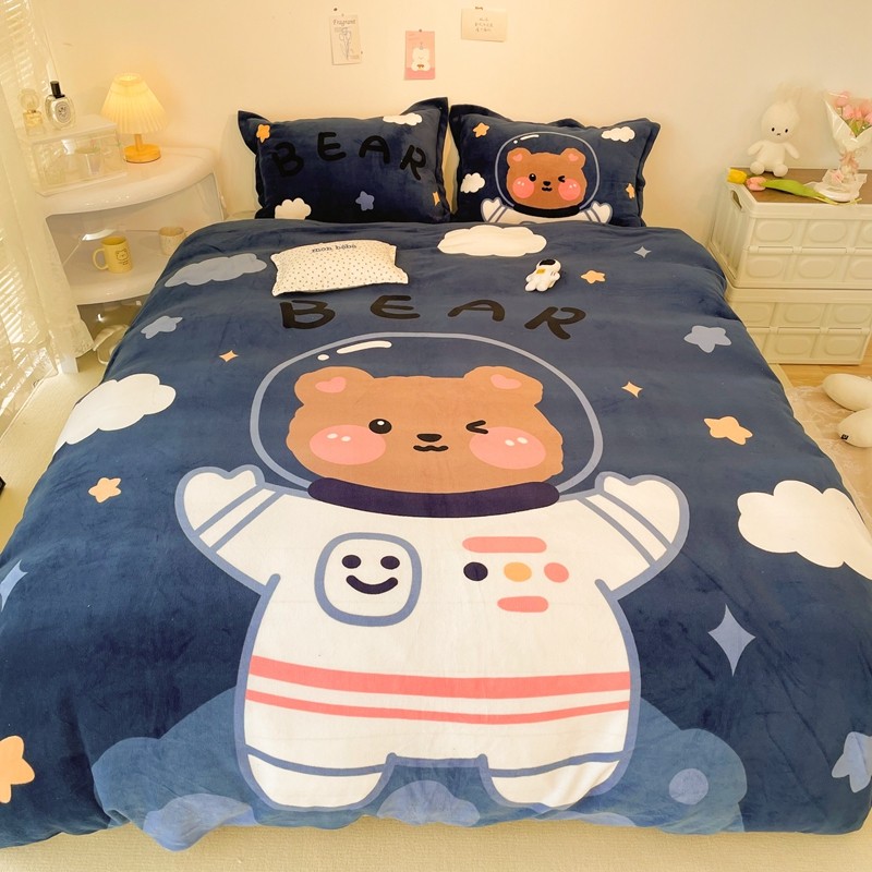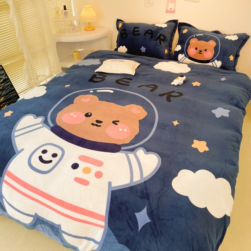 商品名称:慕尚 2022新款北欧牛奶绒大版四件套实拍图暖光 太空熊宝