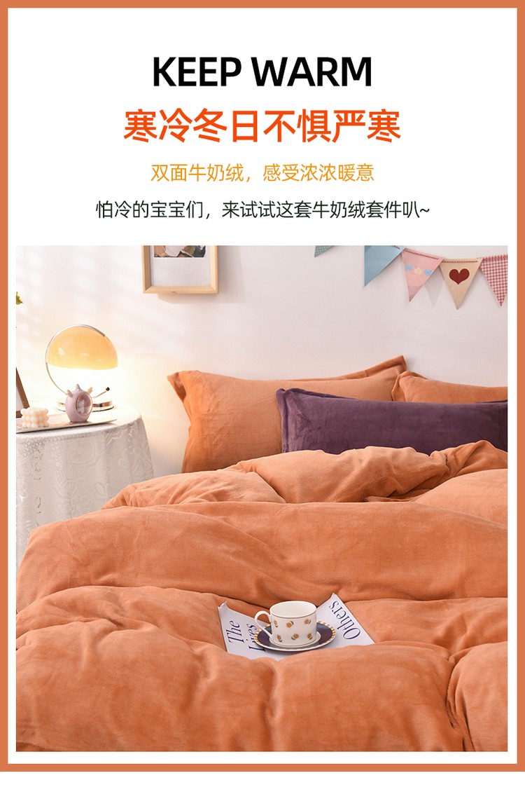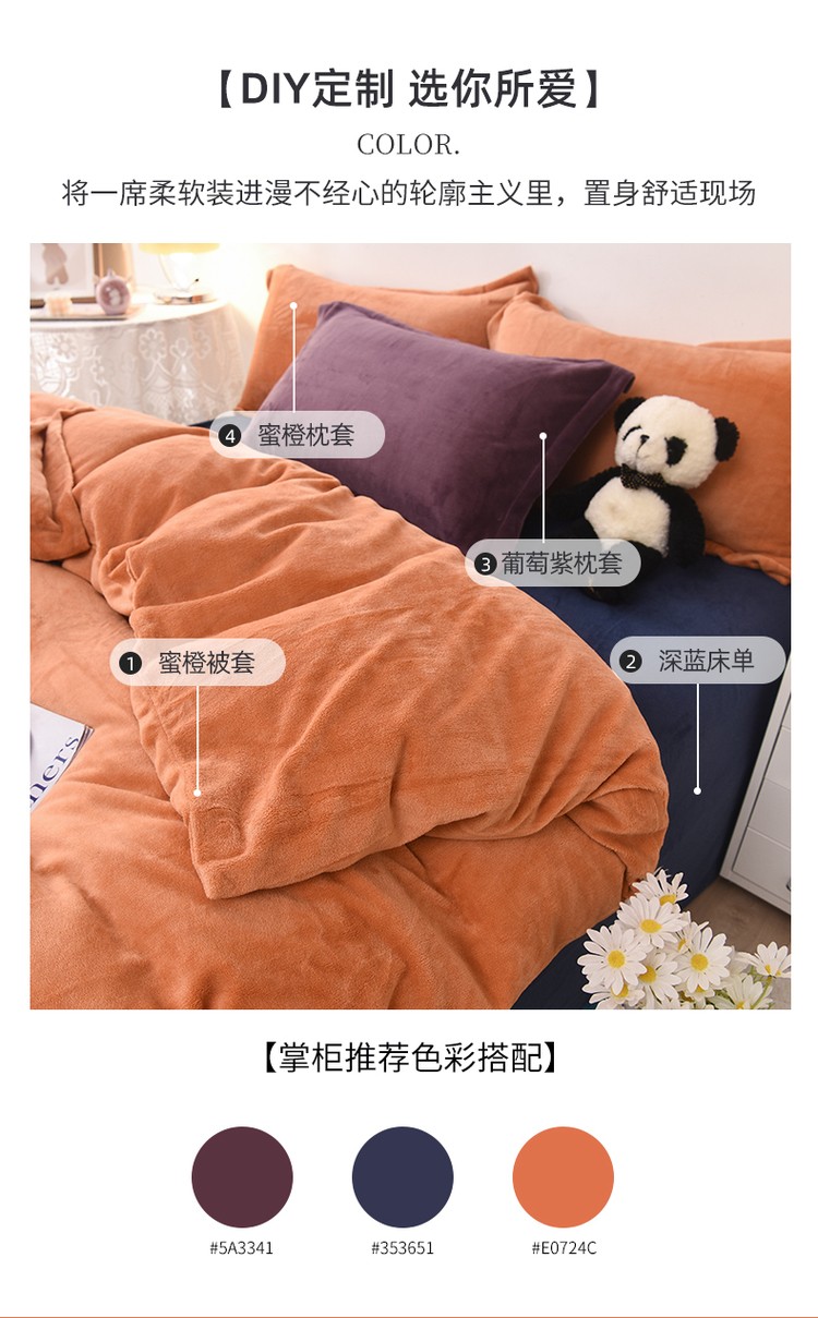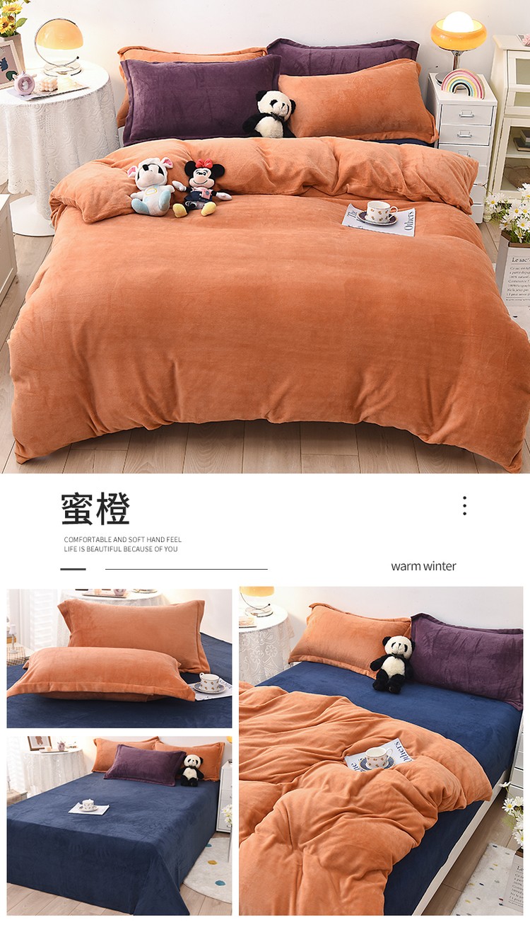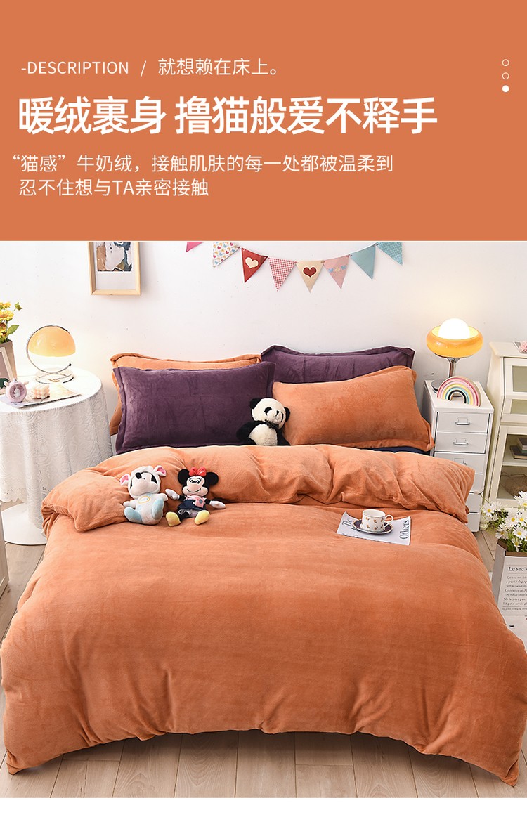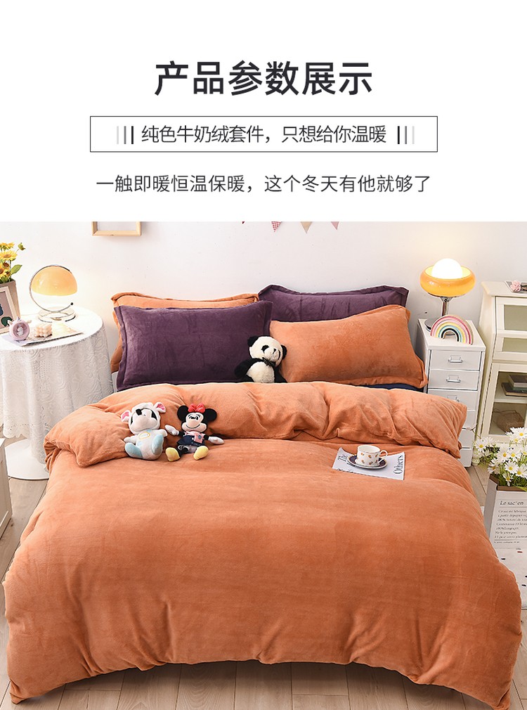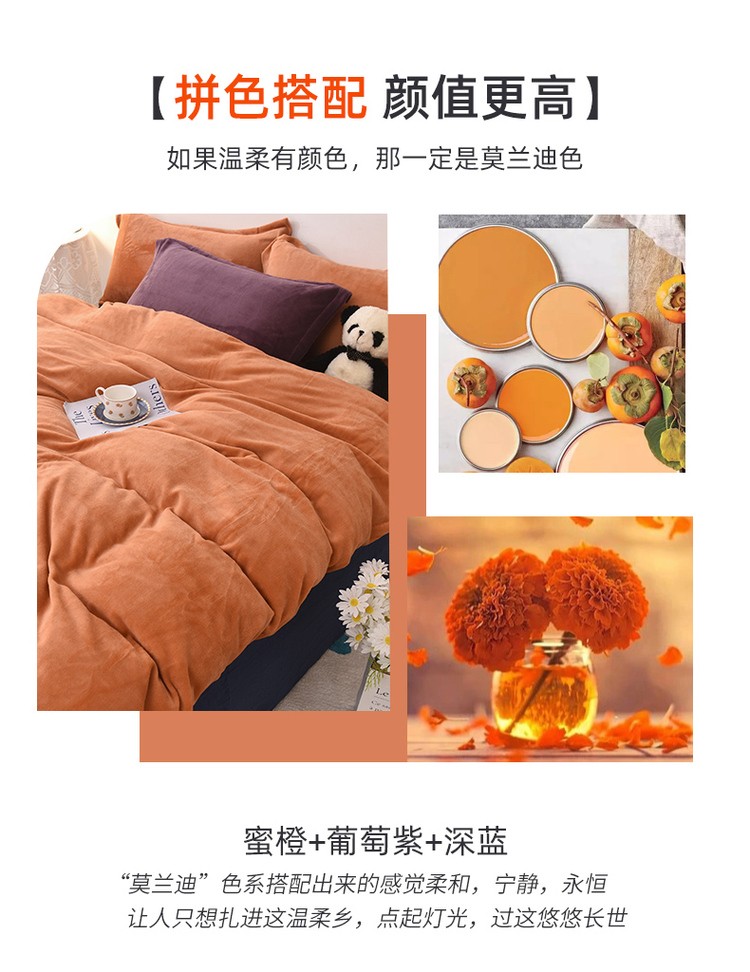 商品名称:优彩 2021新款高克重纯色混搭牛奶绒四件套 蜜橙