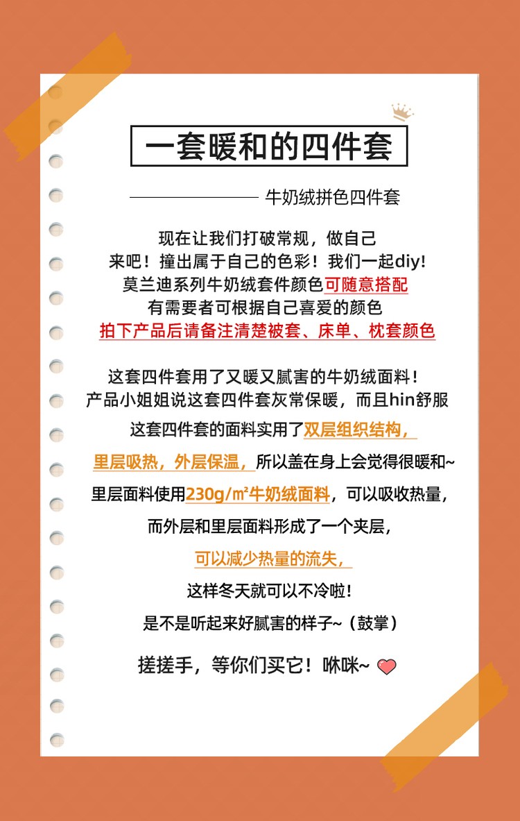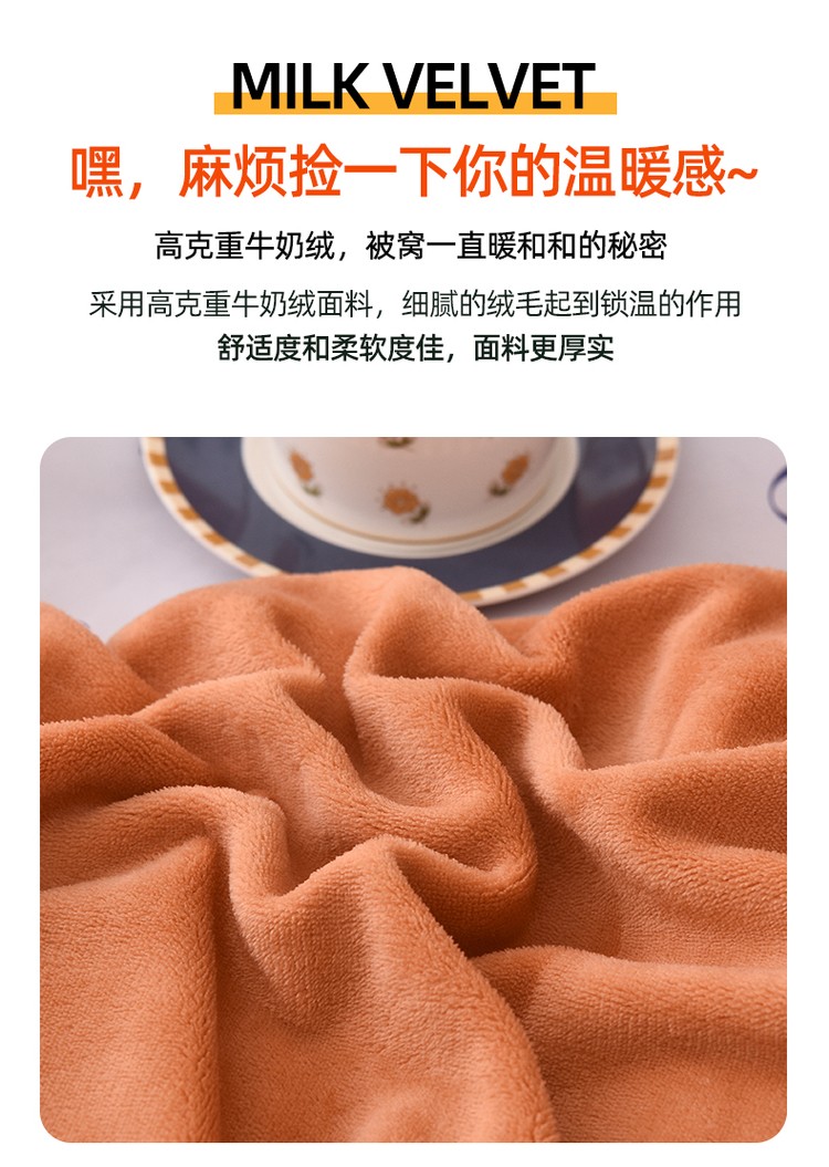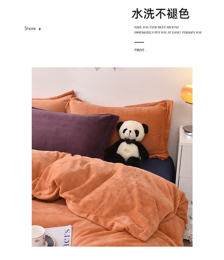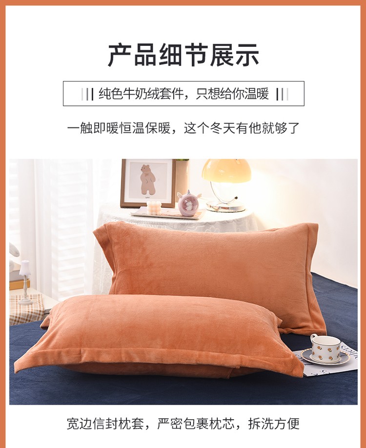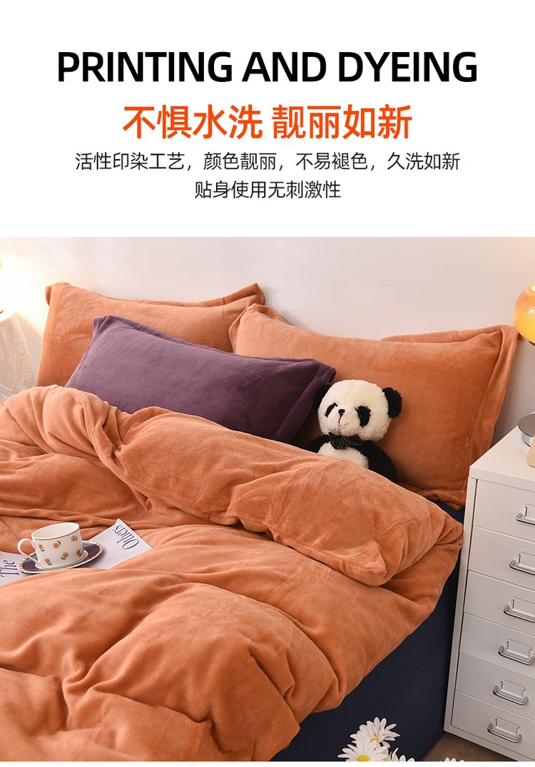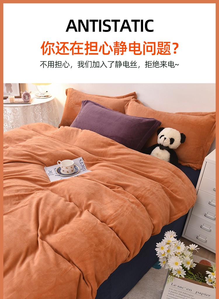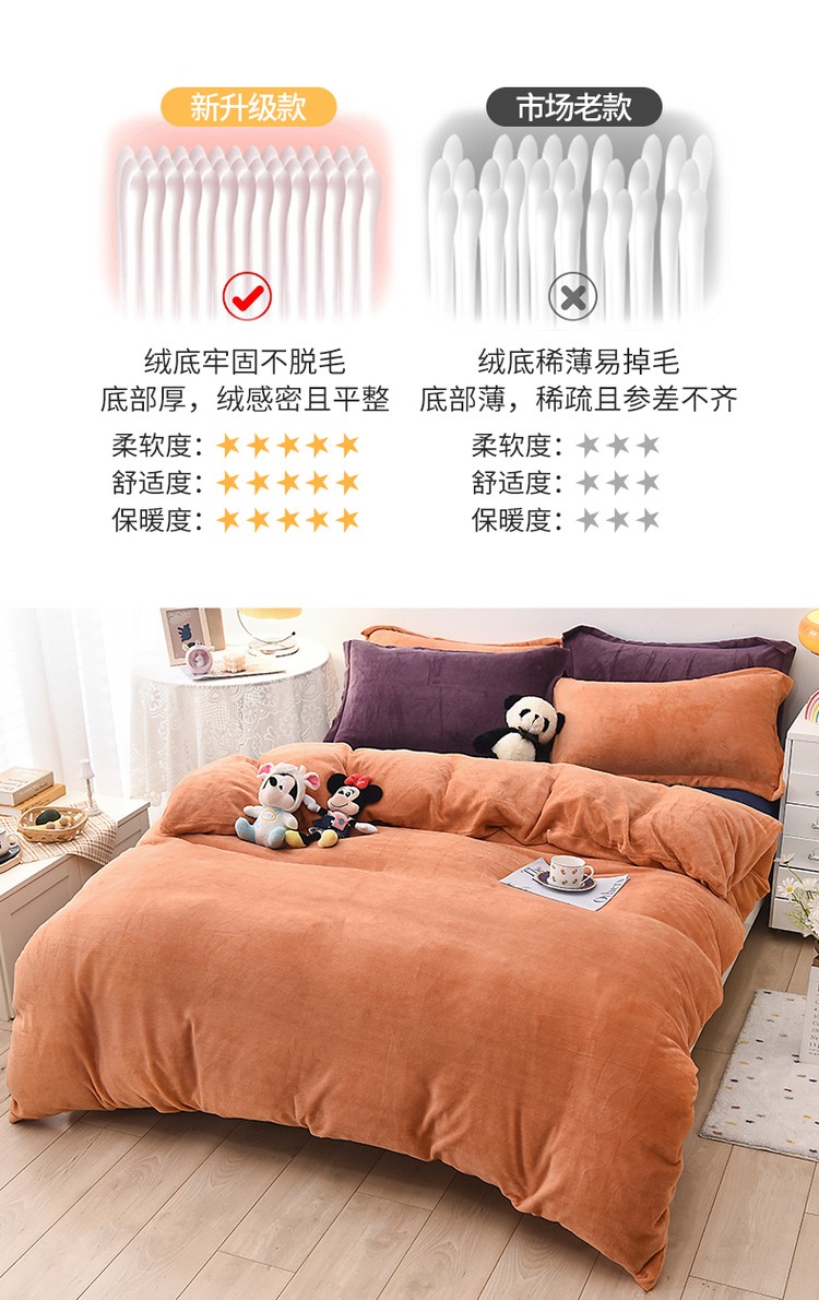 商品名称:优彩 2021新款高克重纯色混搭牛奶绒四件套 蜜橙
