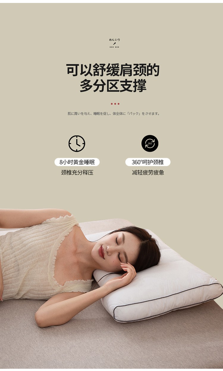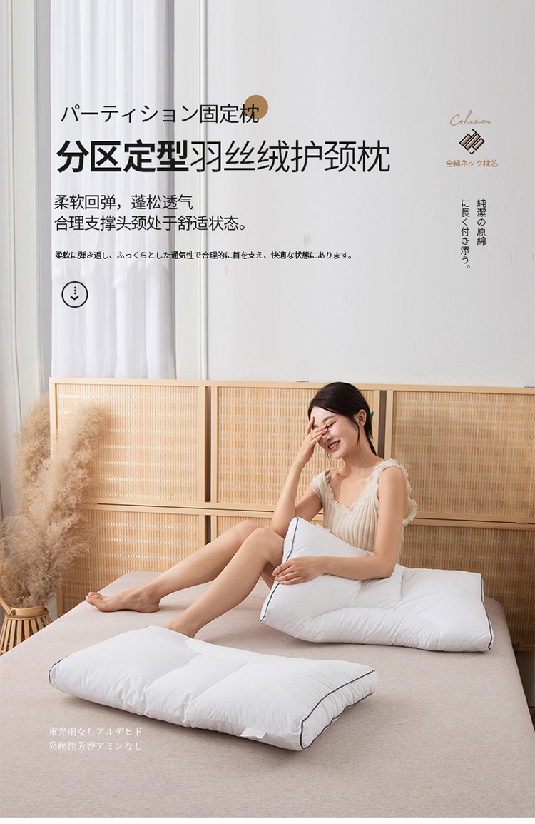 当前位置: 91家纺网 > 商品网购 > 枕头/枕芯/保健枕/颈椎枕 > 普通枕芯 > 锦绣万家 2021新款全棉分区定型枕水洗羽丝绒护颈枕 曲线护颈枕