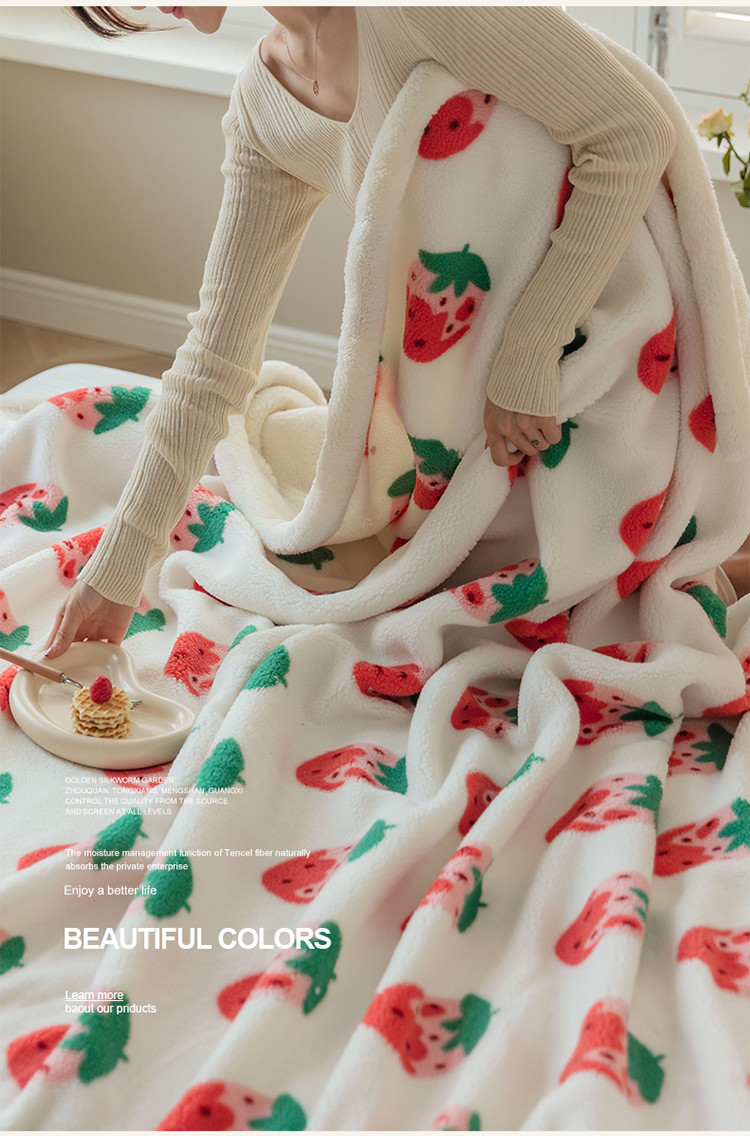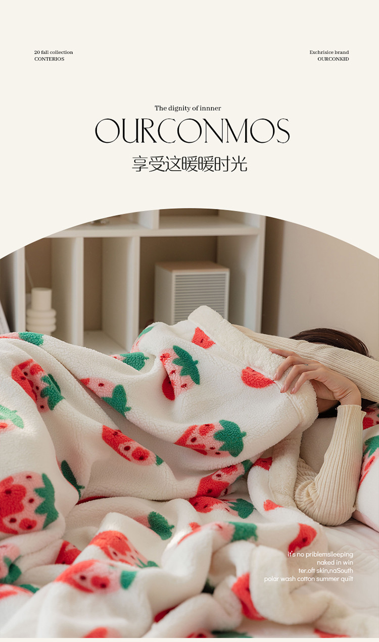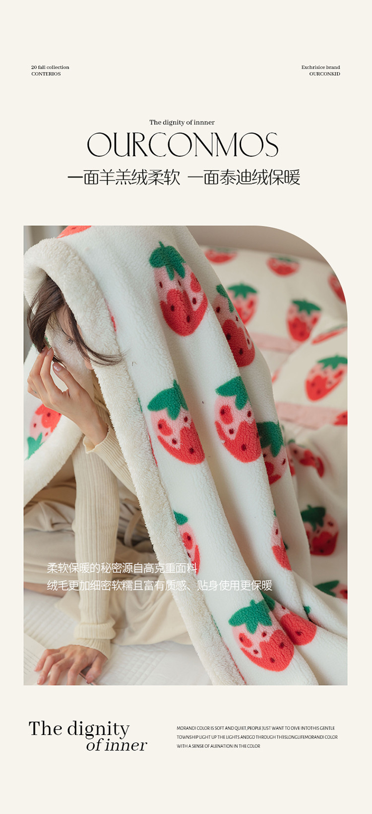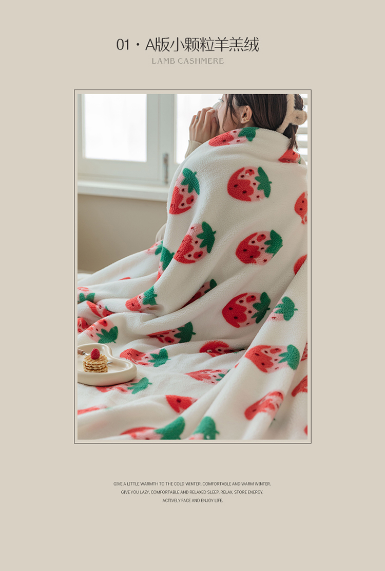 澳梵家居 2021新款ins网红小颗粒羊羔绒双面绒毛毯 草莓味