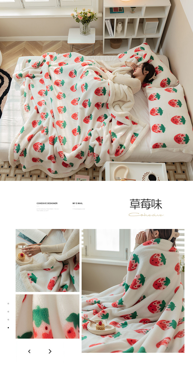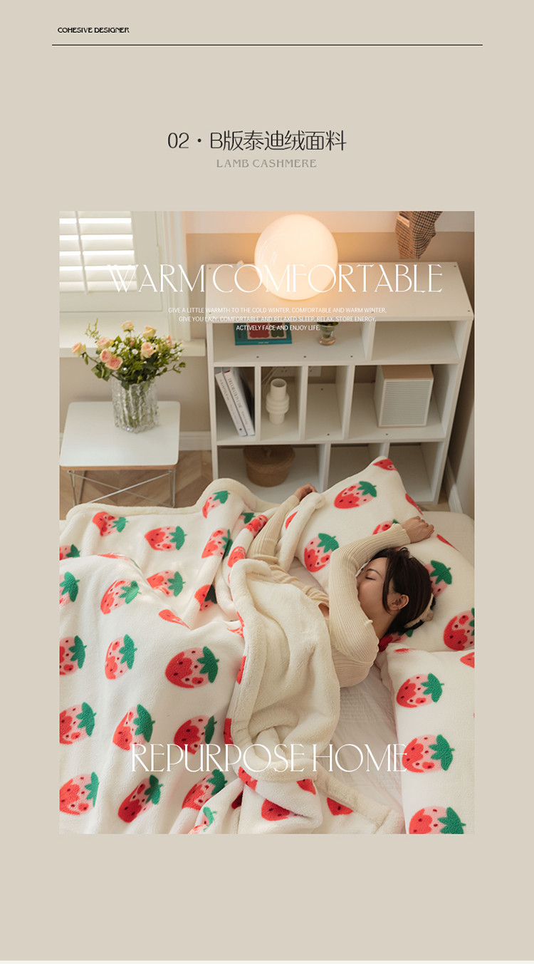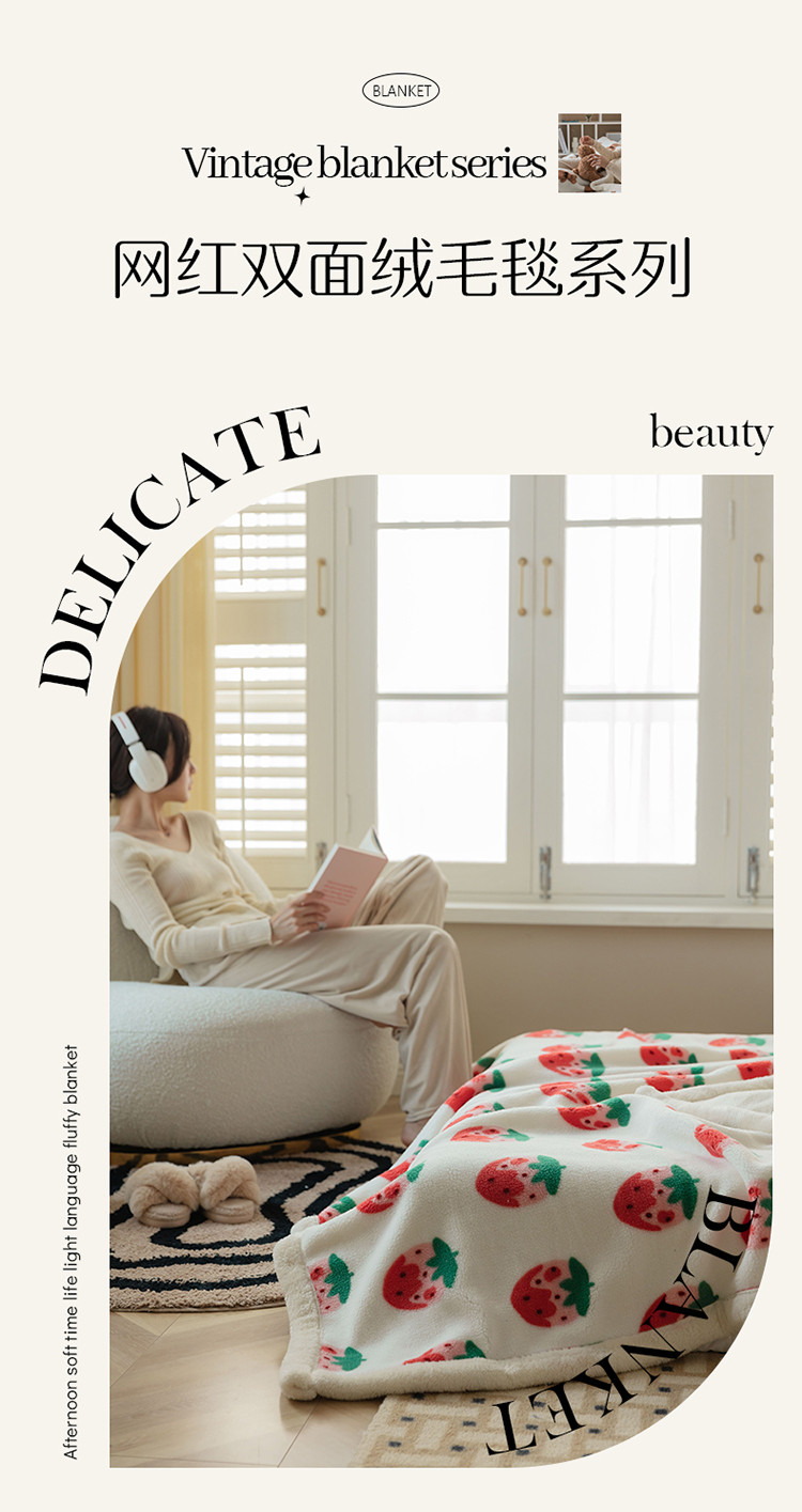 澳梵家居 2021新款ins网红小颗粒羊羔绒双面绒毛毯 草莓味