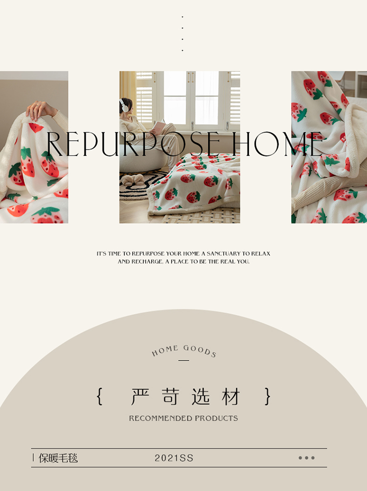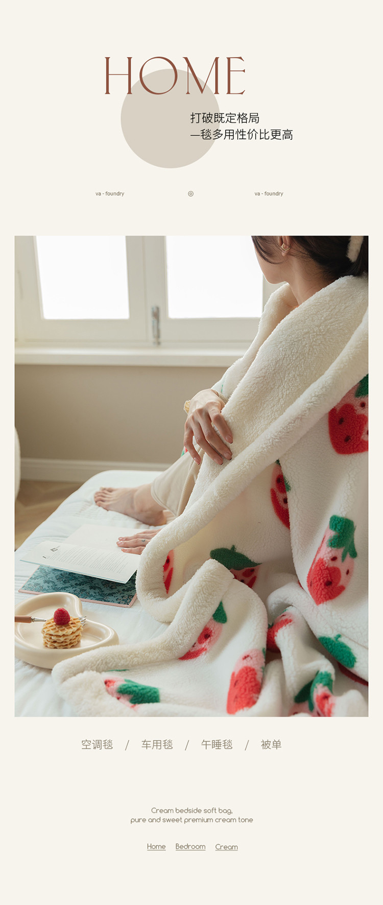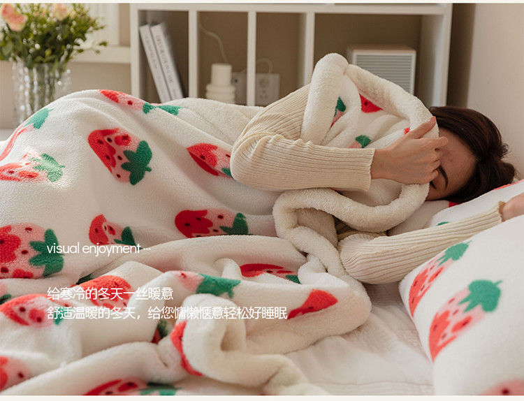 商品名称:澳梵家居 2021新款ins网红小颗粒羊羔绒双面绒毛毯 草莓味