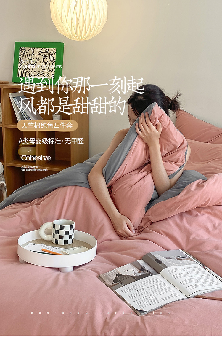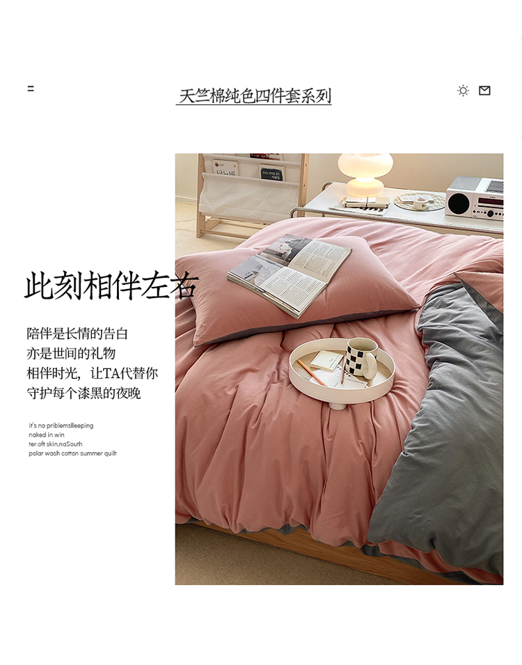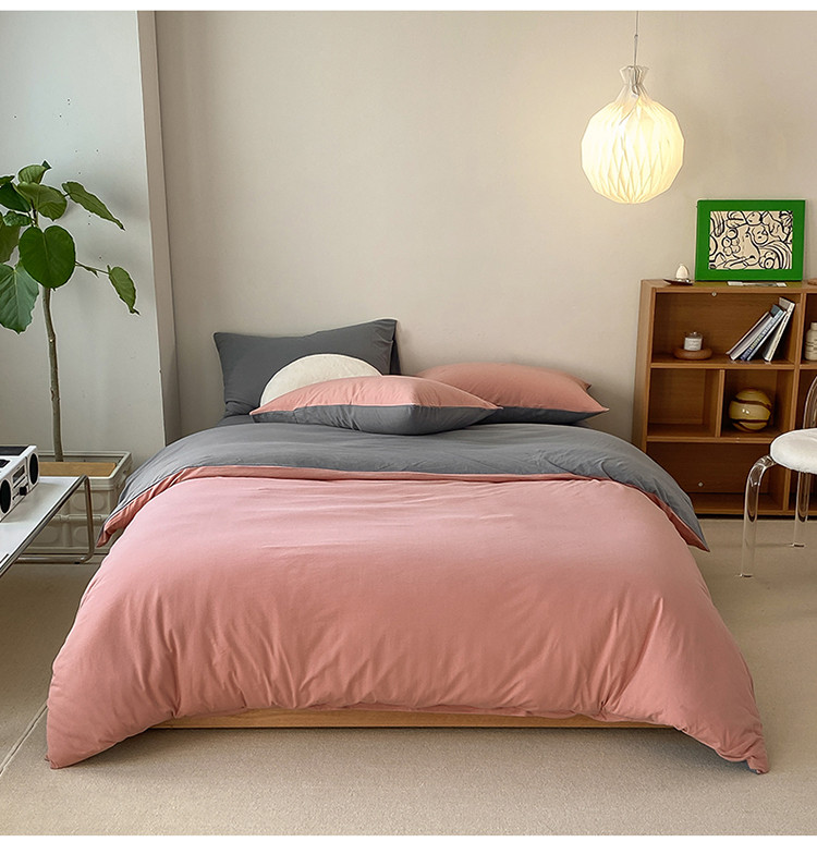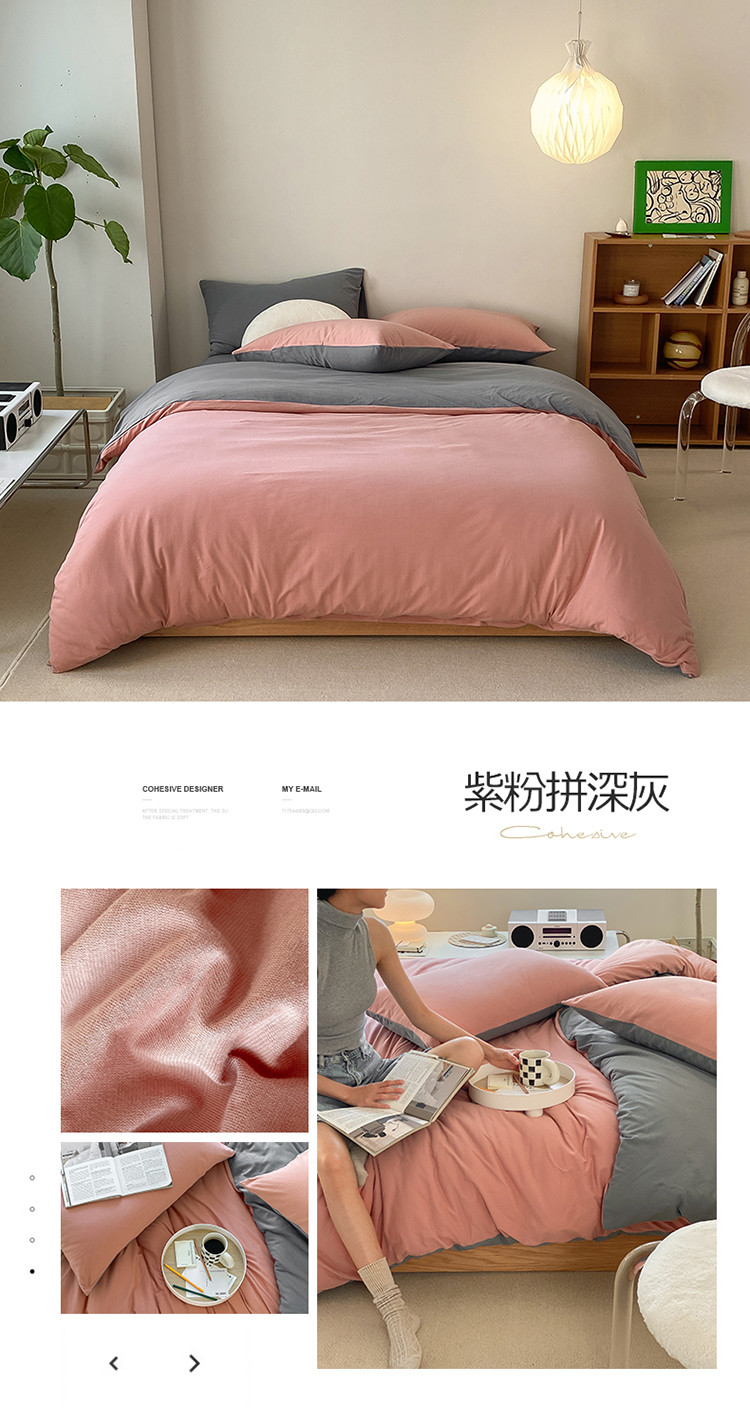 当前位置: 91家纺网 > 商品网购 > 床品套件 > 四件套 > 全棉普通四件套 > 华超针织 2021新款全棉天竺棉纯色双拼四件套 紫粉拼深灰
