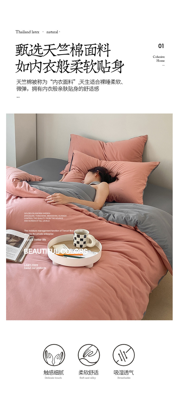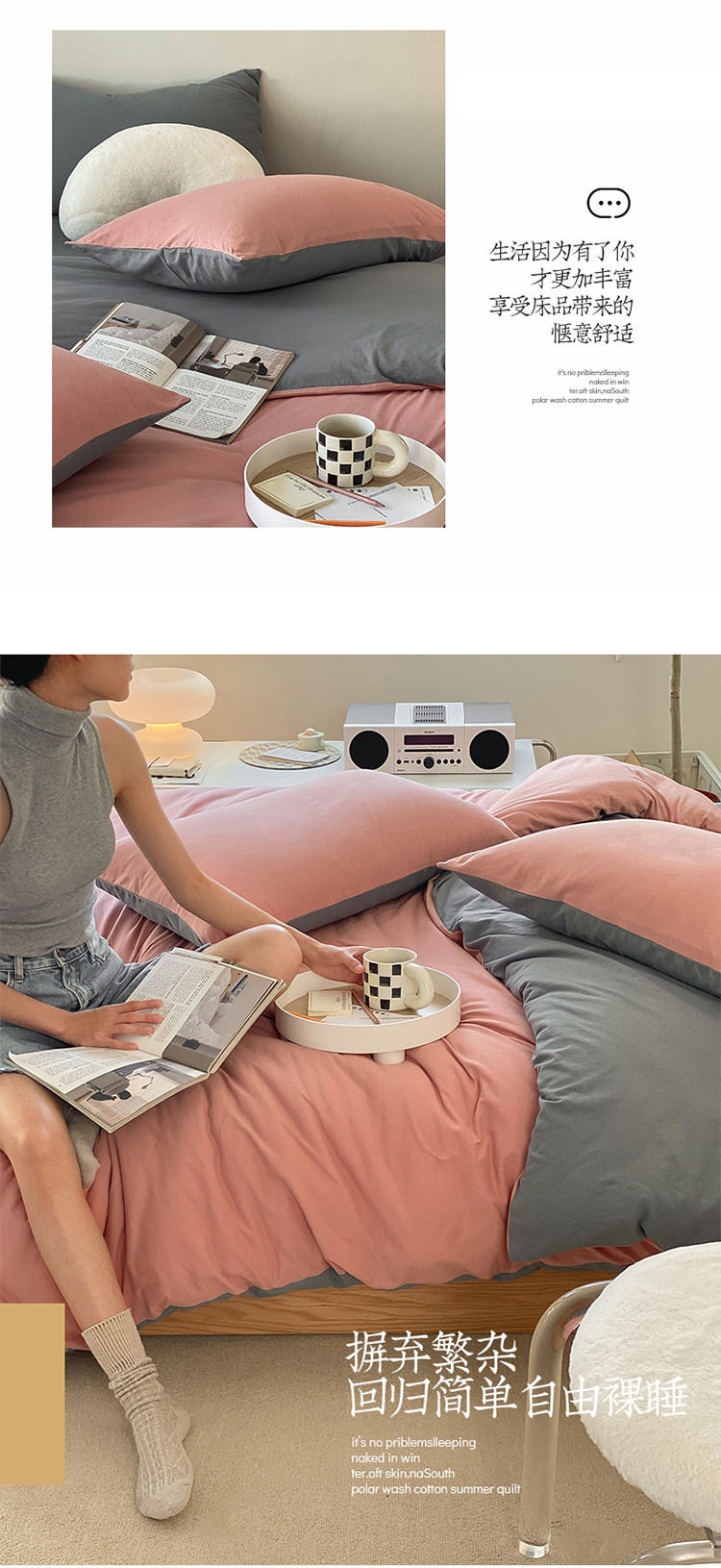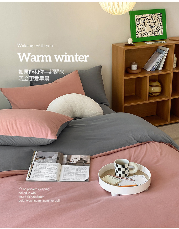 当前位置: 91家纺网 > 商品网购 > 床品套件 > 四件套 > 全棉普通四件套 > 华超针织 2021新款全棉天竺棉纯色双拼四件套 紫粉拼深灰