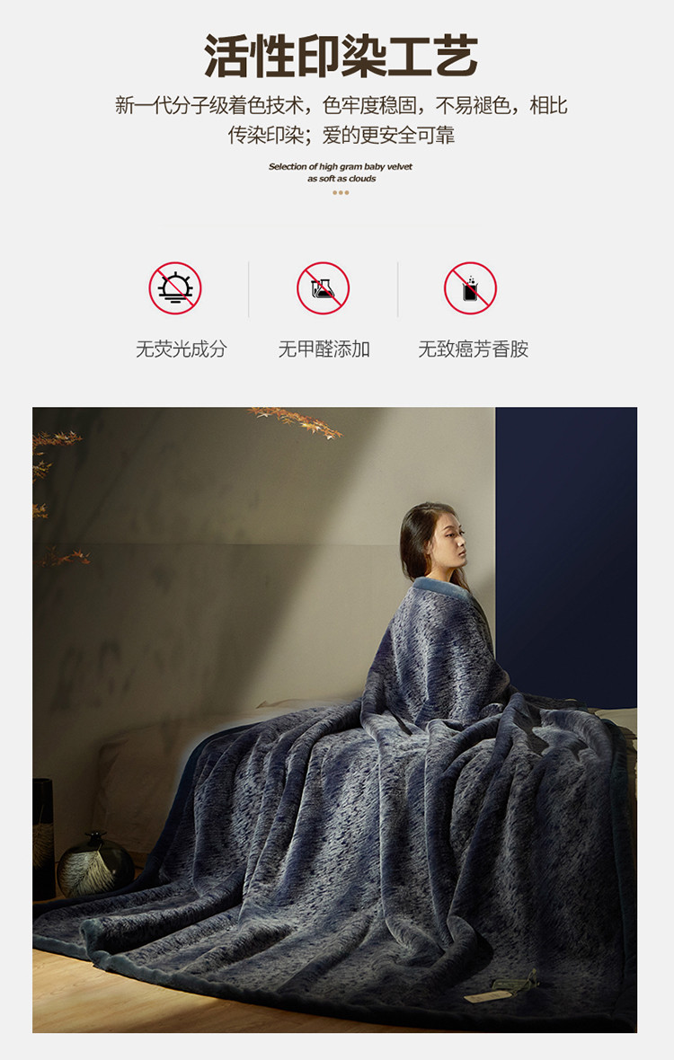 凯轩毛毛毯毯子2024新款双层仿水貂皮草毛毯毯子 宾利蓝