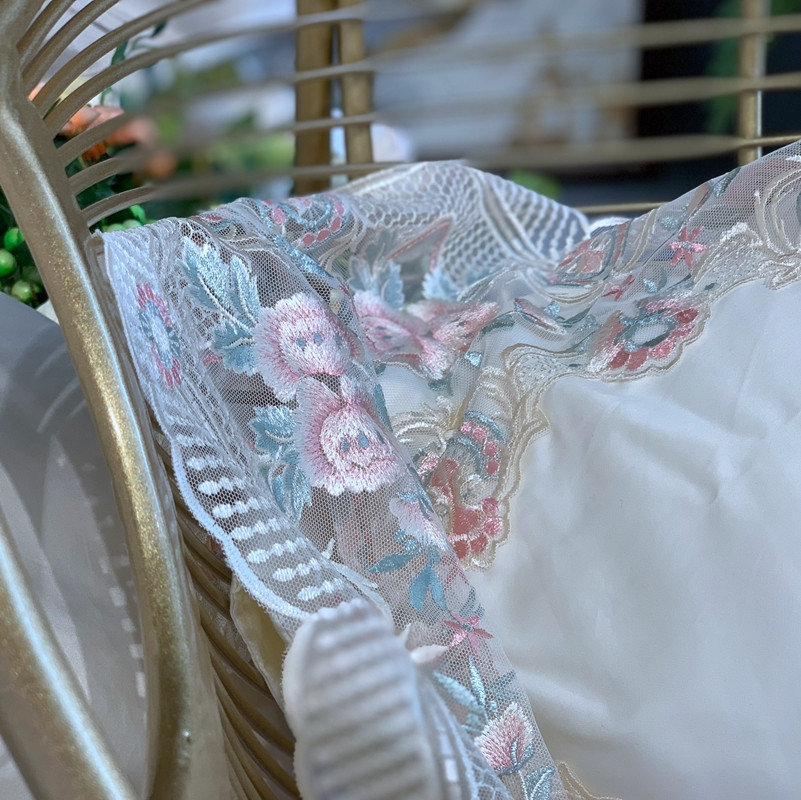 缔缦家纺 2022新款100支长绒棉蕾丝系列四件套-蕊初 米白色