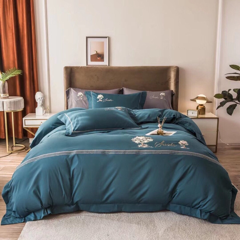 (总)玖玖爱家纺 2023新款120支贡缎长绒棉刺绣梦柔系列四件套,梦柔-香槟金,梦柔-香橙桔,梦柔-高级灰,梦柔-水蓝,梦柔-芙蓉玉