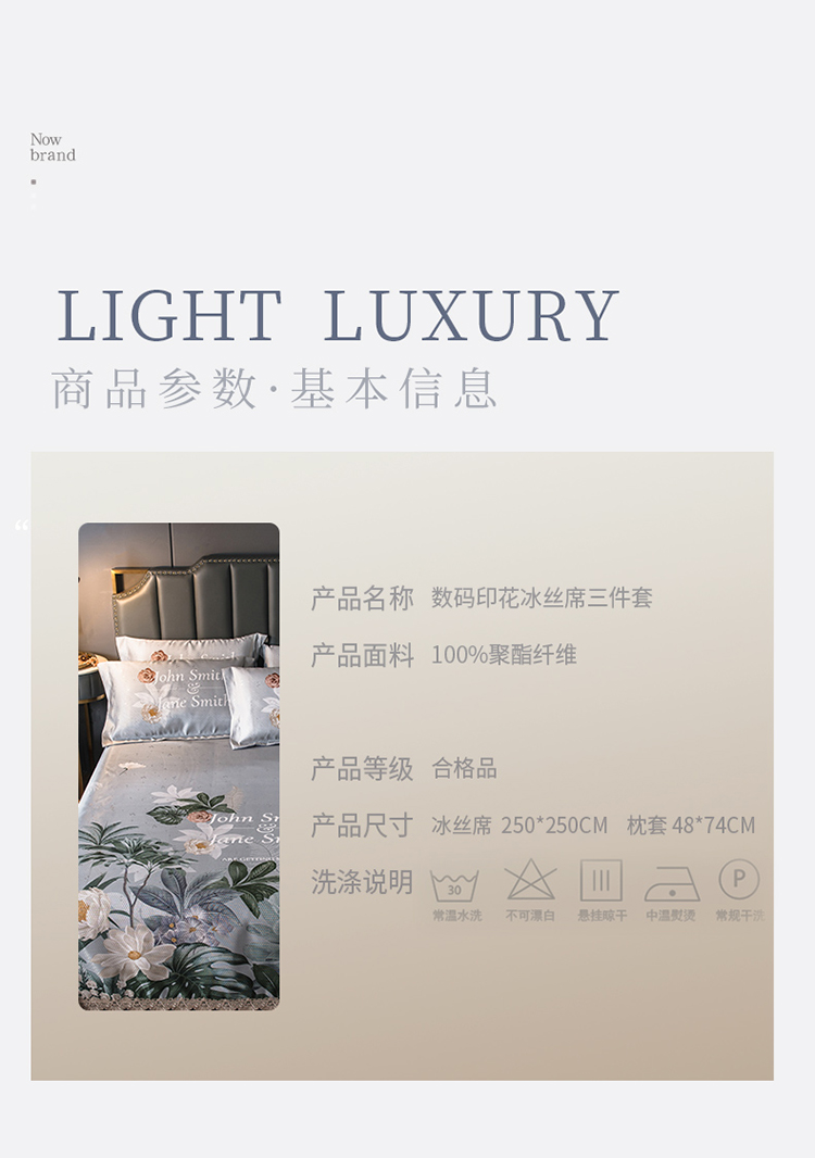 商品名称:其奥 2025数码大版冰丝席三件套凉席空调席软席 夏日缤纷