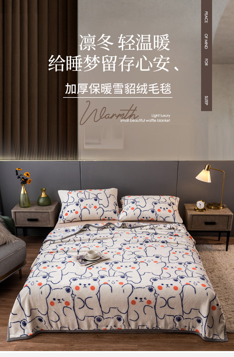 当前位置: 91家纺网 > 商品网购 > 毛毯休闲毯绒毯 > 毛毯 > 慕尚 2025新款雪貂绒四季毛毯 小熊宝