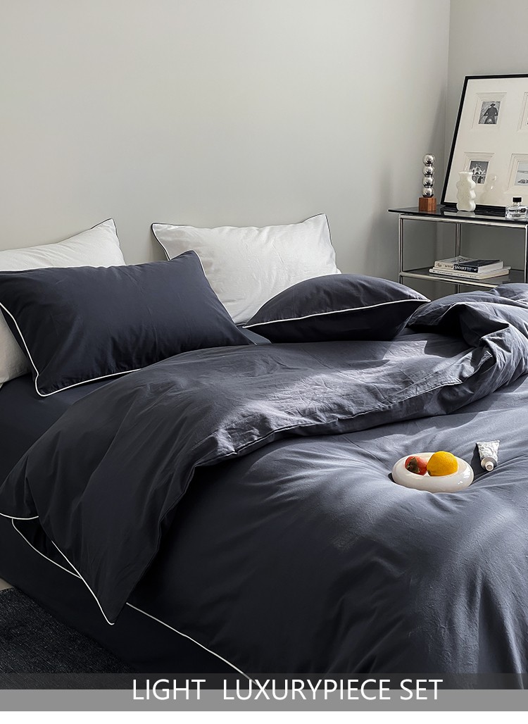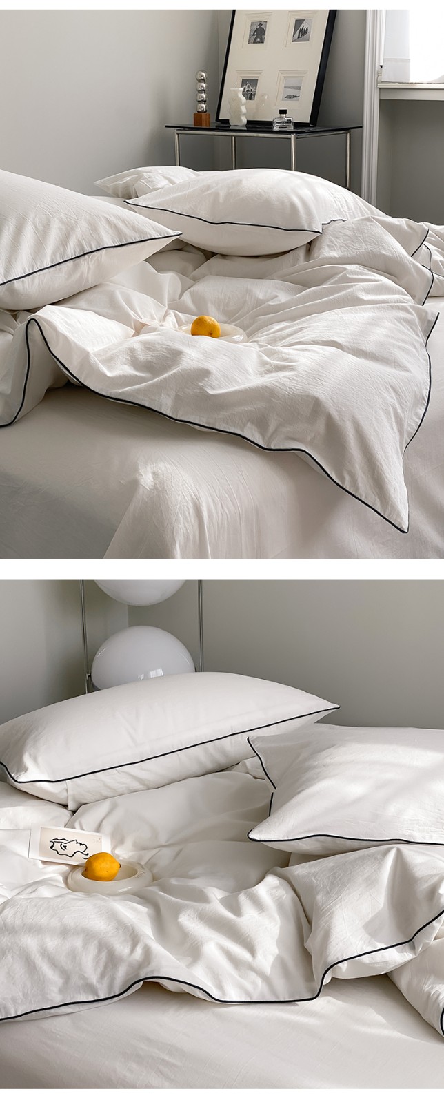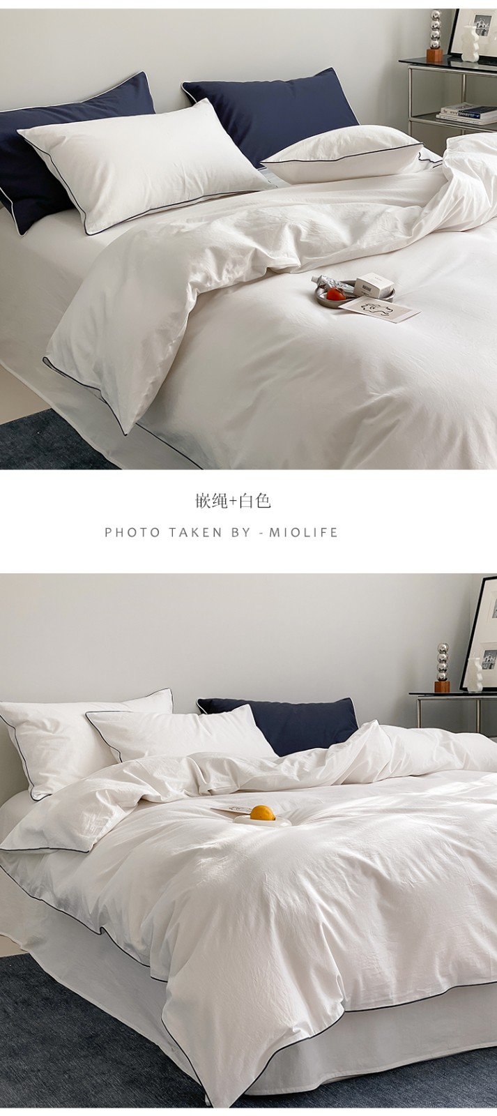 当前位置: 91家纺网 > 商品网购 > 床品套件 > 四件套 > 水洗棉四件套 > 纯棉水洗棉四件套全棉纯色滚边轻奢纯白套件藏青酒店风民宿