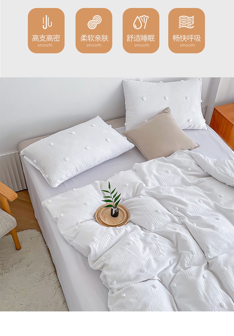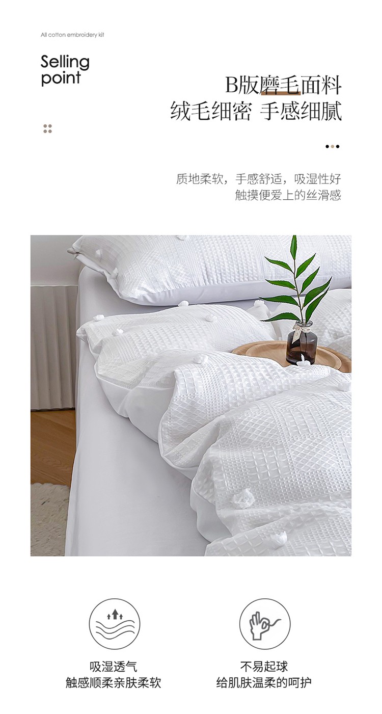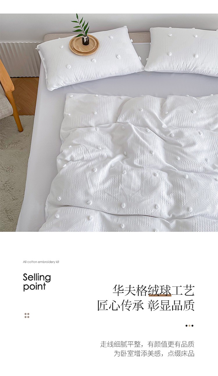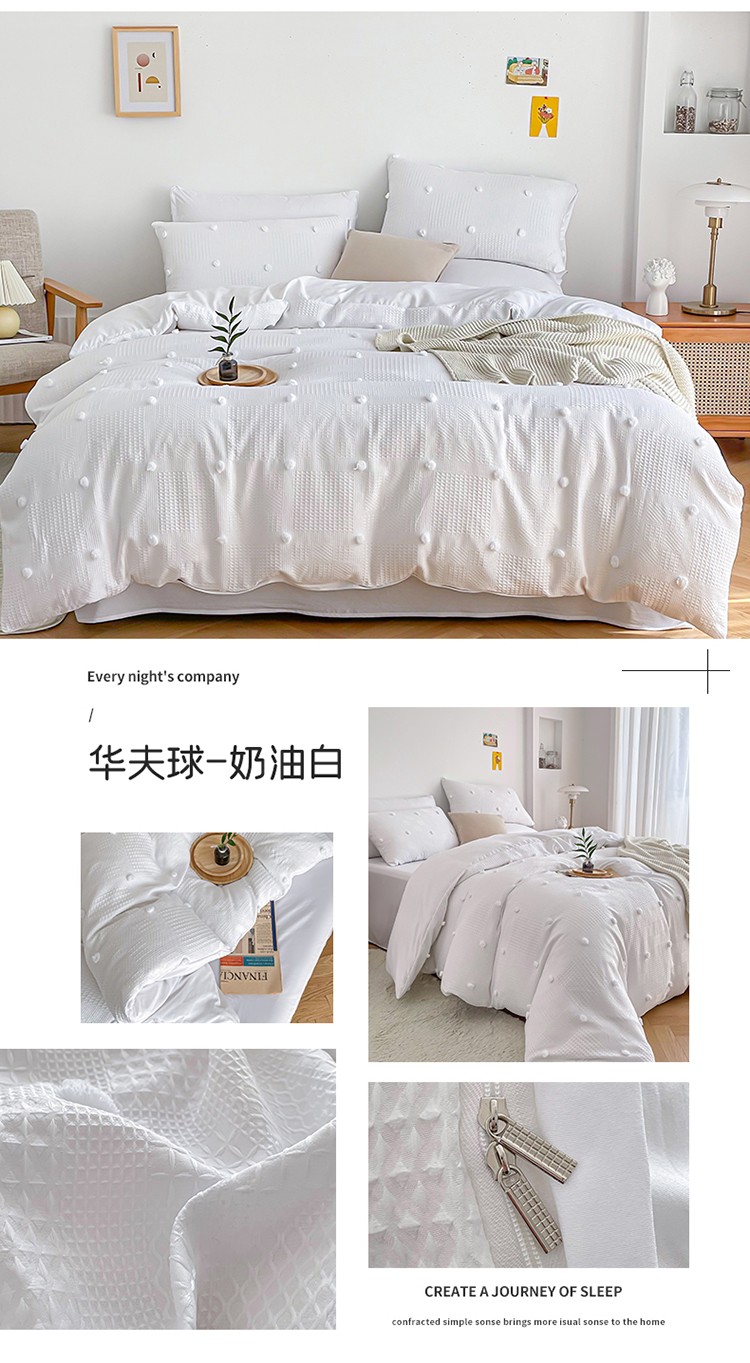 商品名称:绒兔兔 2022新款立体花案剪花床单床笠四件套 华夫球奶油白