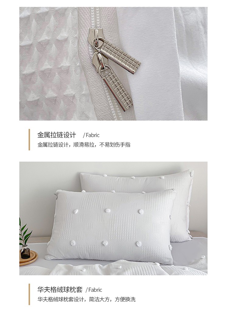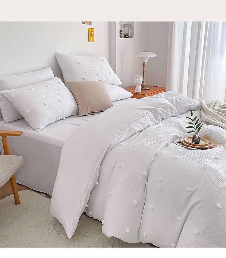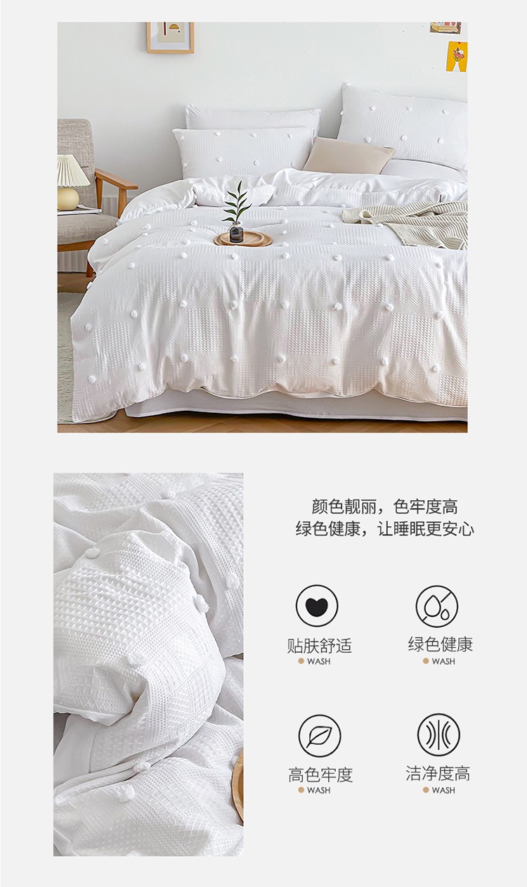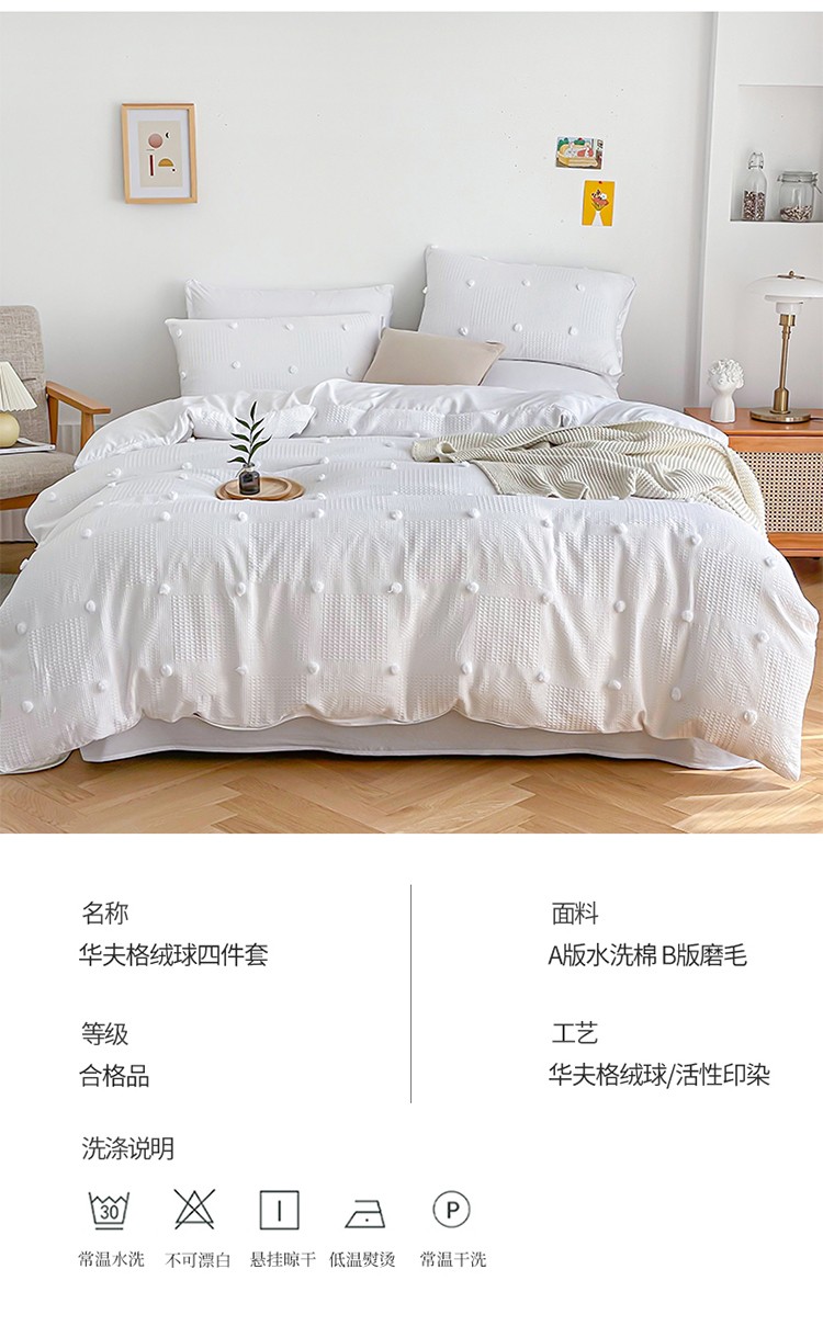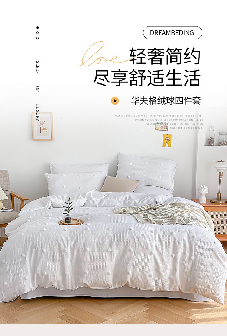 商品名称:绒兔兔 2022新款立体花案剪花床单床笠四件套 华夫球奶油白