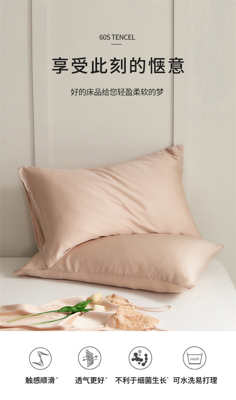 商品名称:新款60支天丝单品系列-枕套杏粉色