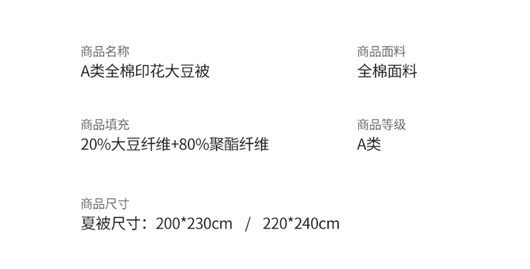 商品名称:(总)芯恋家居2025新款母婴级无印染大提花大豆春秋夏被