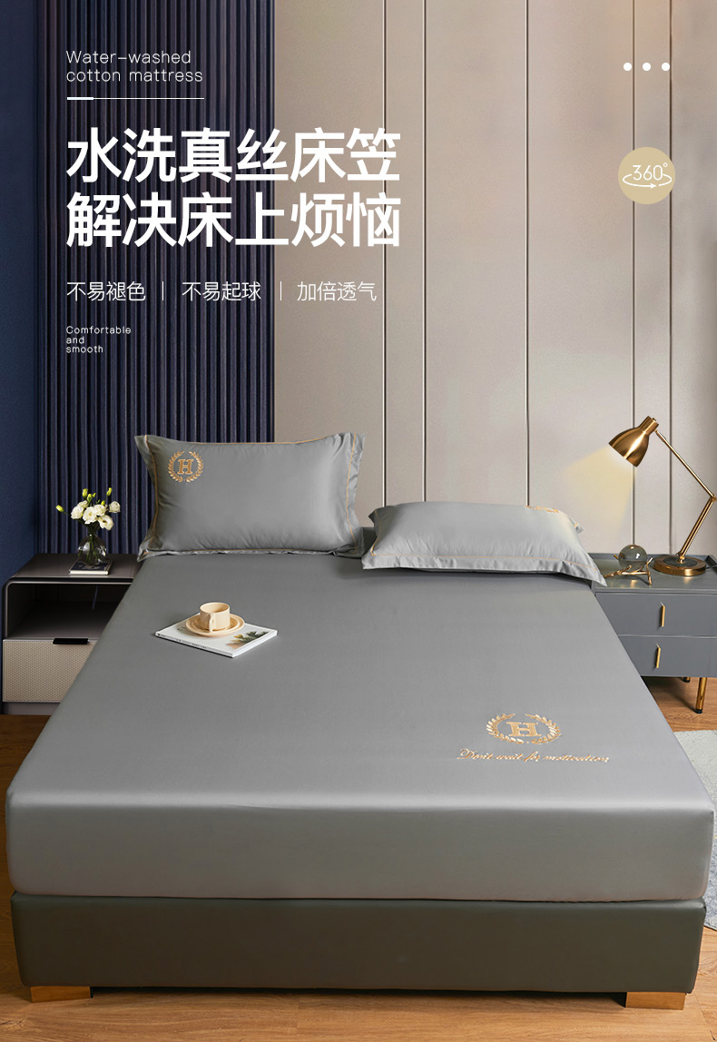 商品名称:冰丝床笠单件可水洗夏天床罩防尘罩轻奢床套罩床垫套罩全包三件套