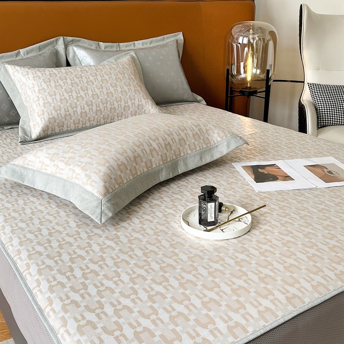 (总)三味舒屋 2025新款麦吉拉时尚印花冰藤凉席席子,麦吉拉 米 床席,麦吉拉 蓝 床席,麦吉拉蓝 床笠,麦吉拉米 床笠