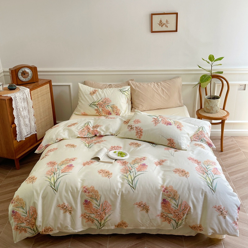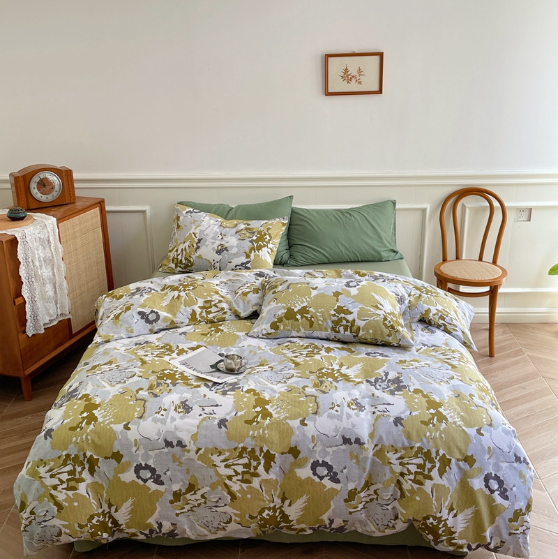 (总)窝米2022新款13370全棉四件套花卉系列,春风里,青柚,秋收,水波纹米驼,水波纹炭黑,恬谧,夏花,云溪红,云溪黄