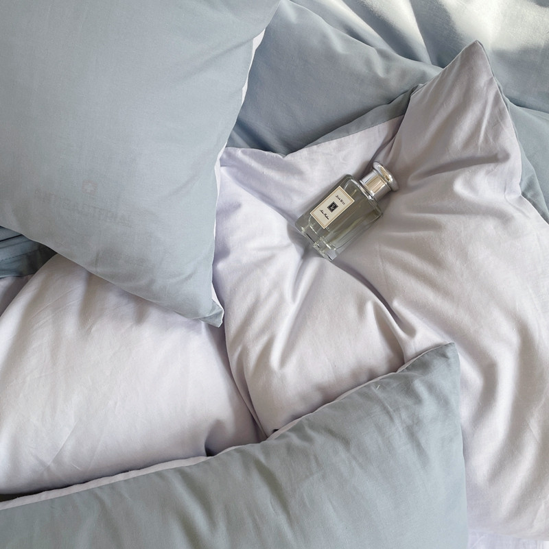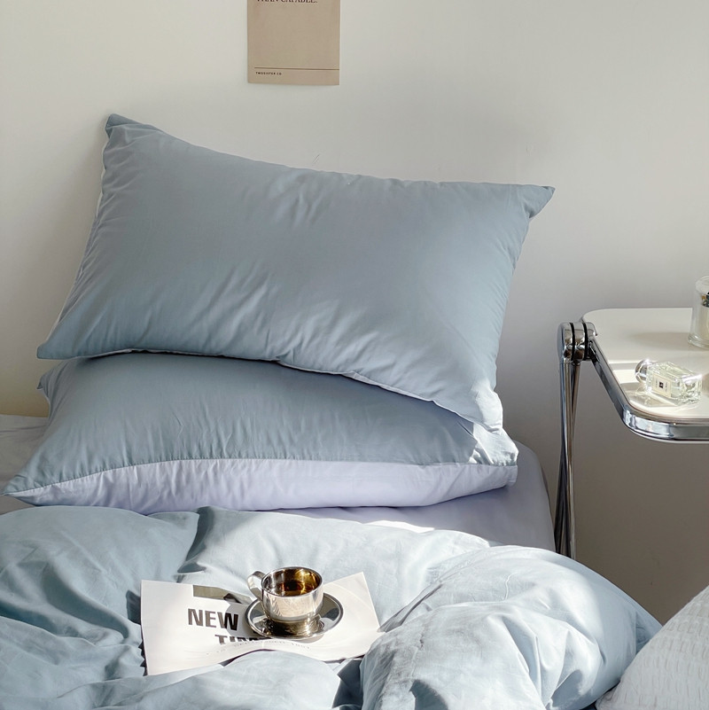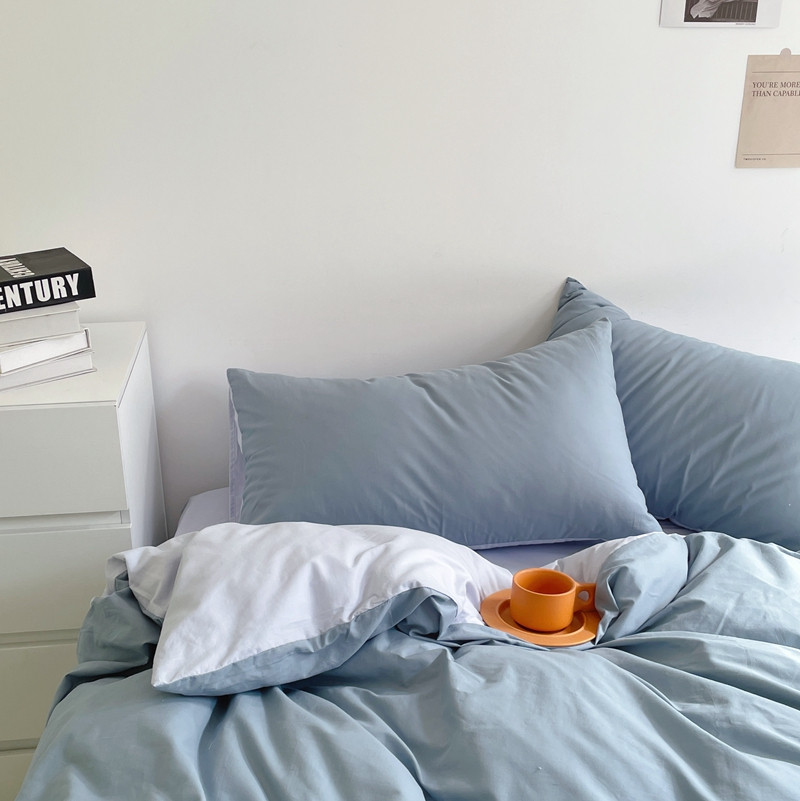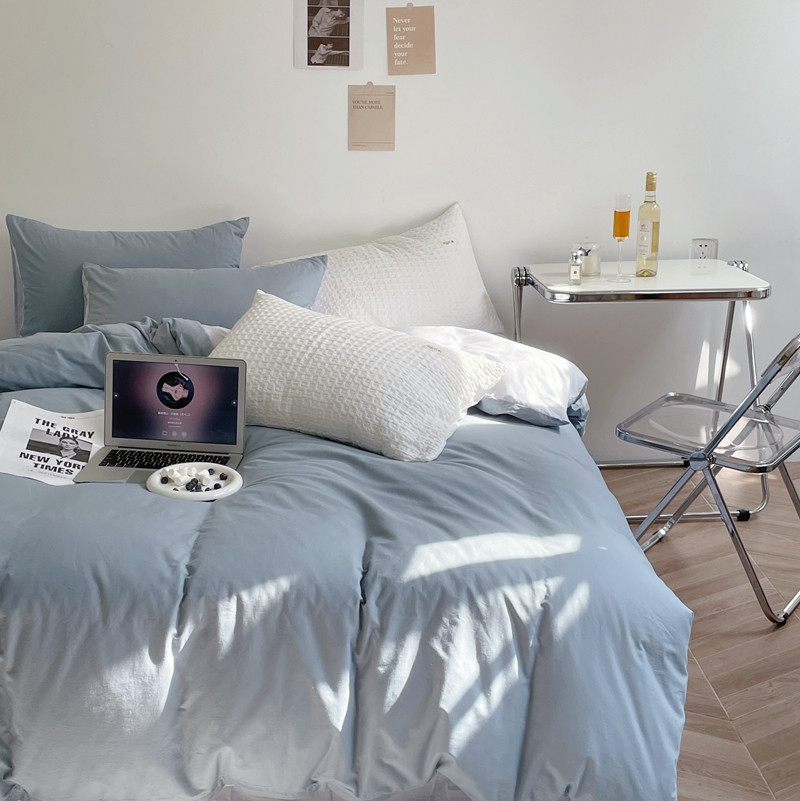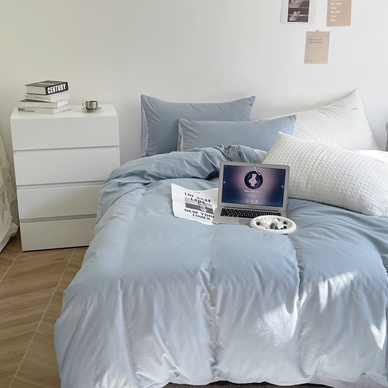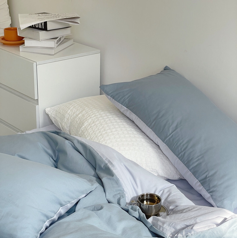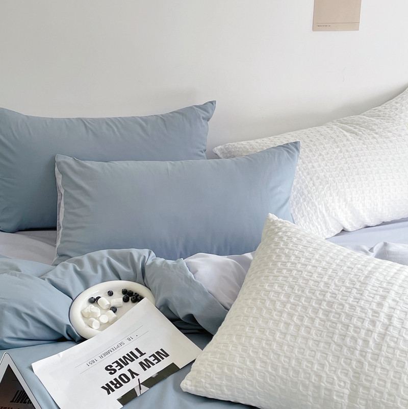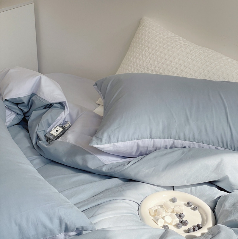 当前位置: 91家纺网 > 商品网购 > 床品套件 > 四件套 > 水洗棉四件套 > 窝米 2022夏季新品素色双拼水洗棉四件套 雾霾蓝双拼