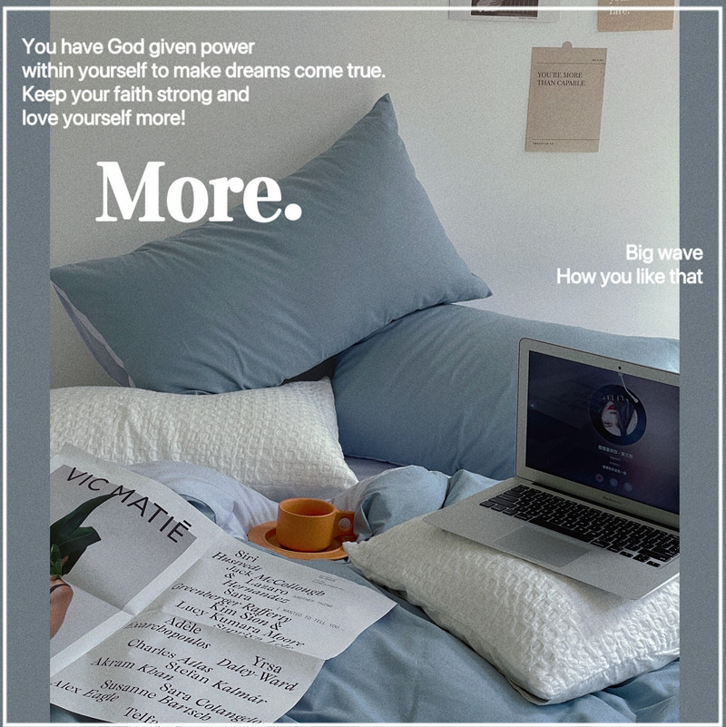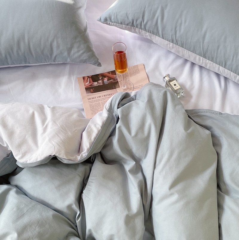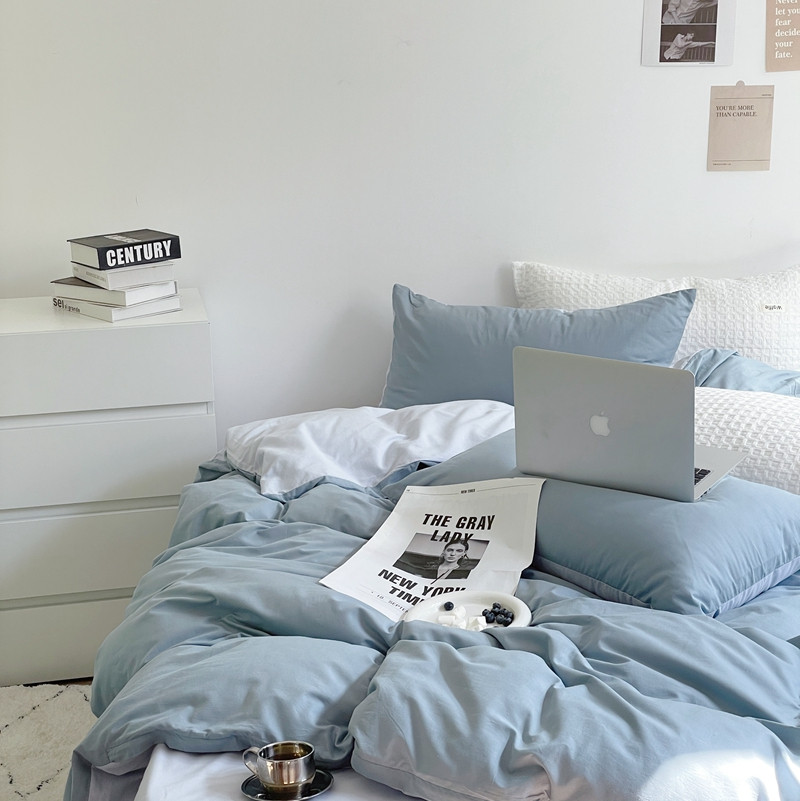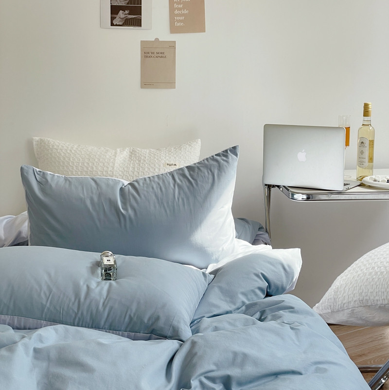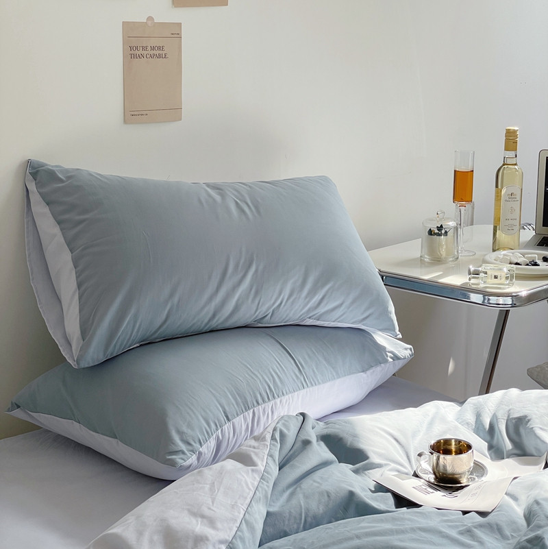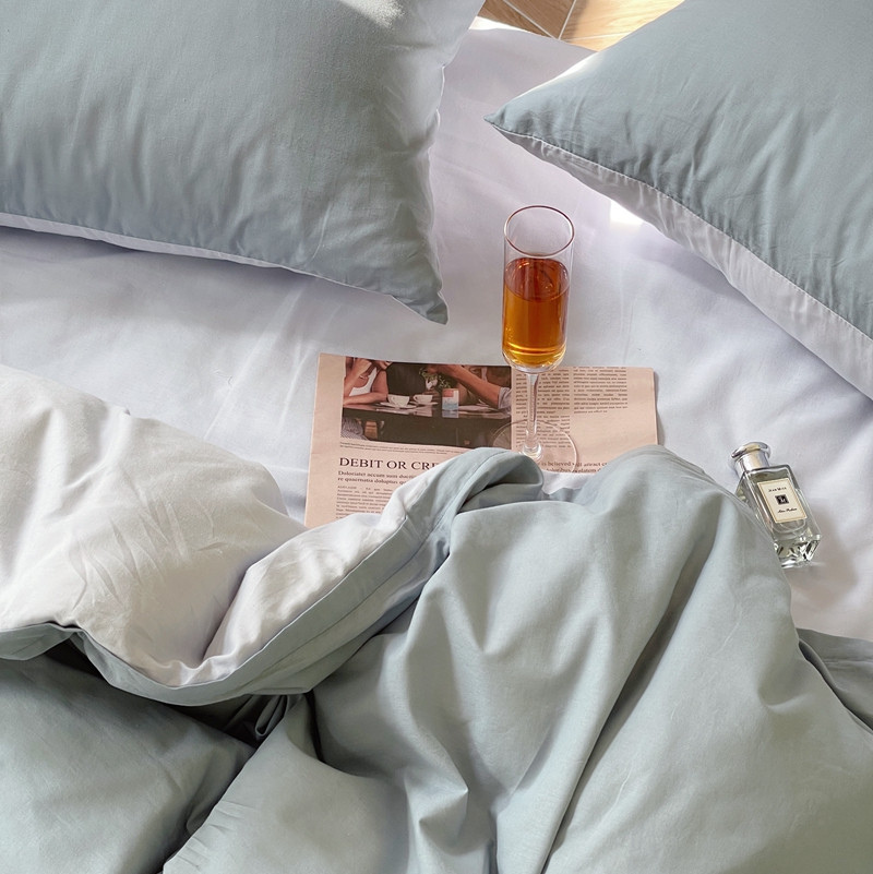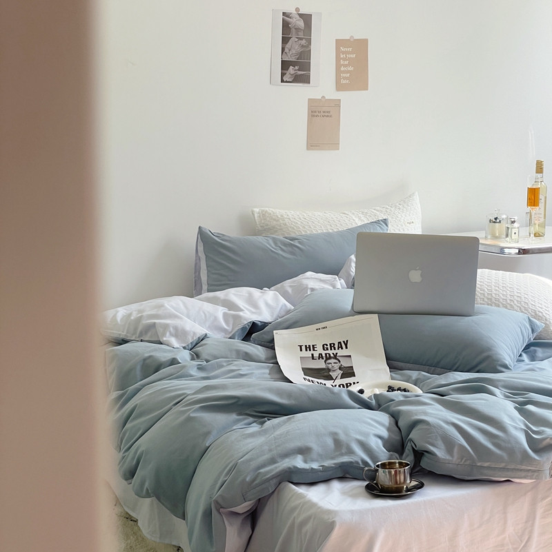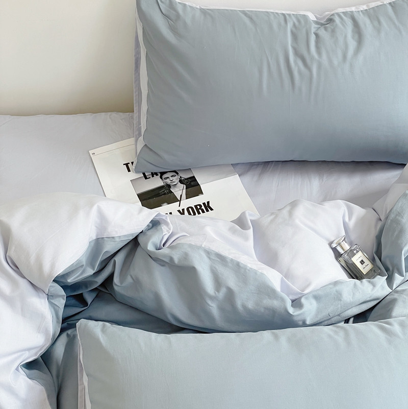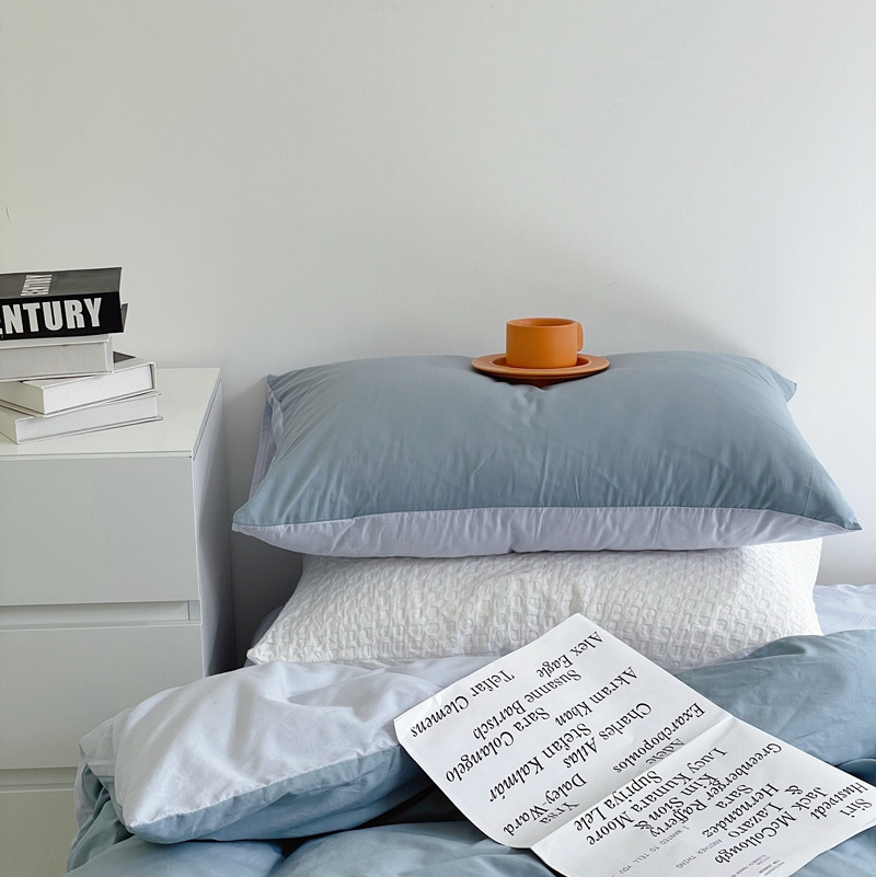 当前位置: 91家纺网 > 商品网购 > 床品套件 > 四件套 > 水洗棉四件套 > 窝米 2022夏季新品素色双拼水洗棉四件套 雾霾蓝双拼