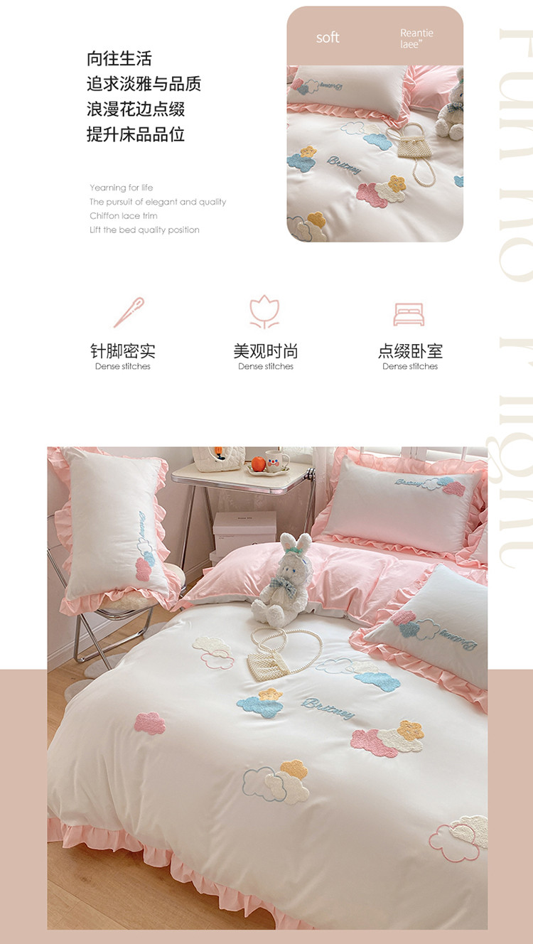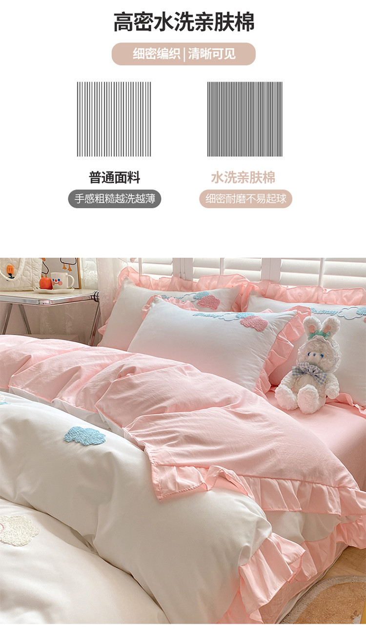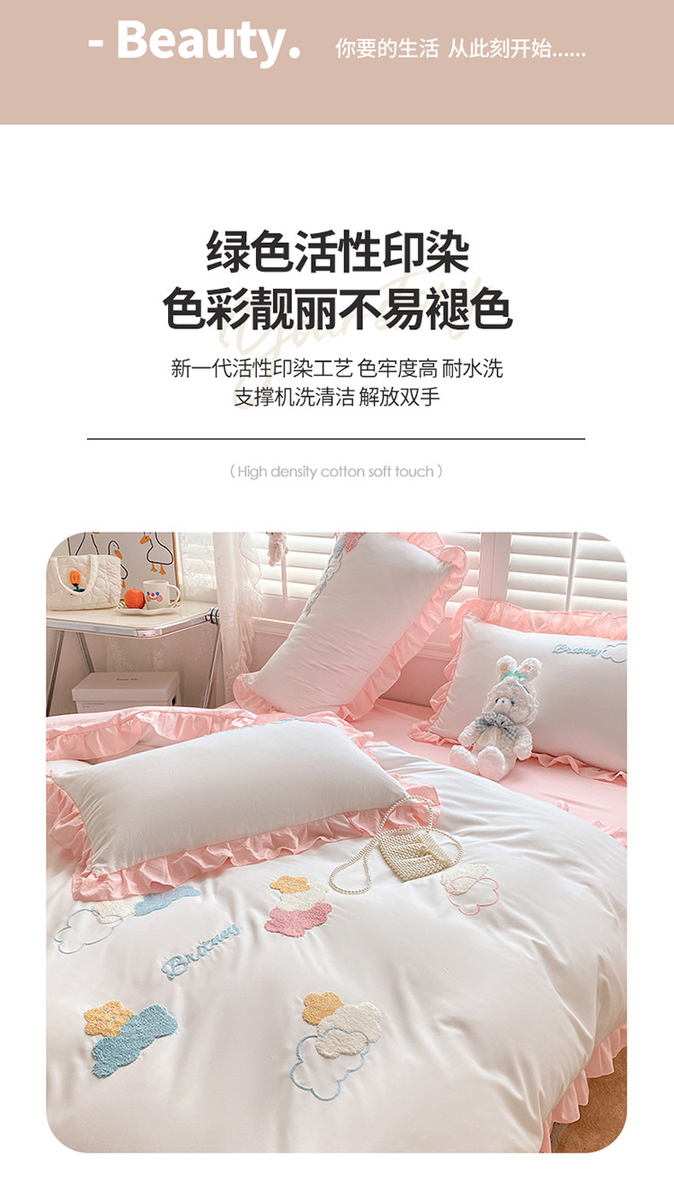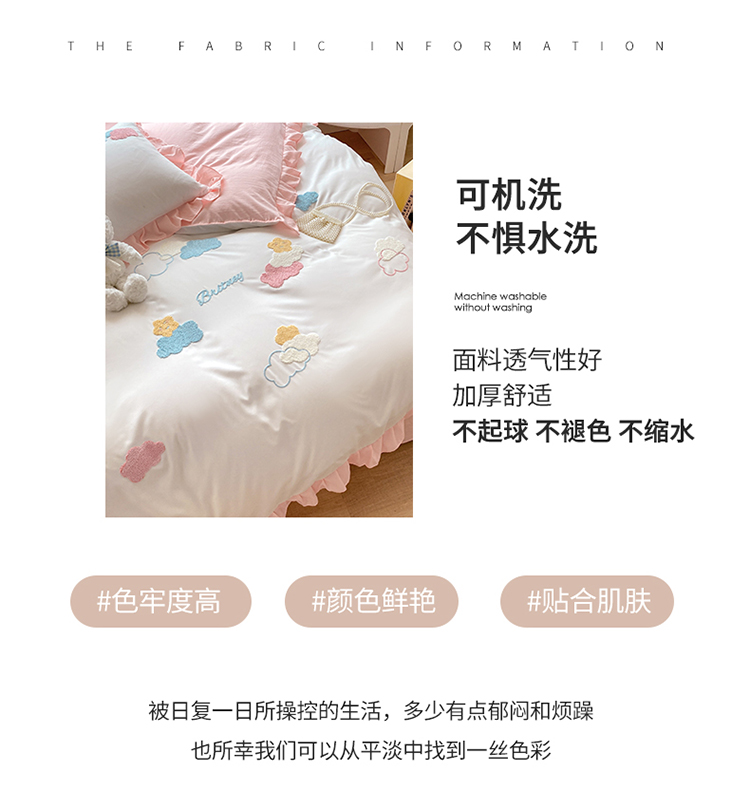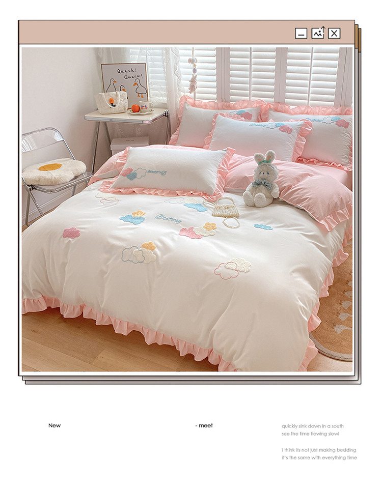 当前位置: 91家纺网 > 商品网购 > 床品套件 > 四件套 > 水洗棉四件套 > 易禾2022新款小清新水洗亲肤棉四件套七彩云朵 七彩云朵白粉