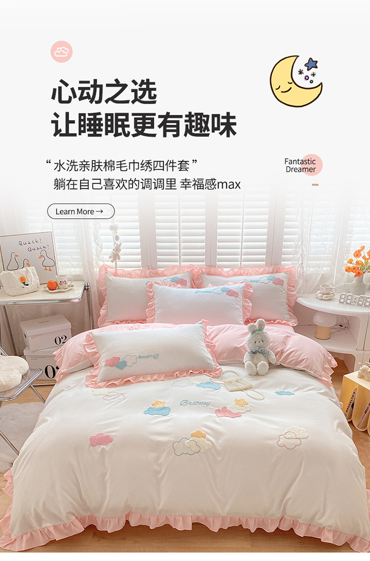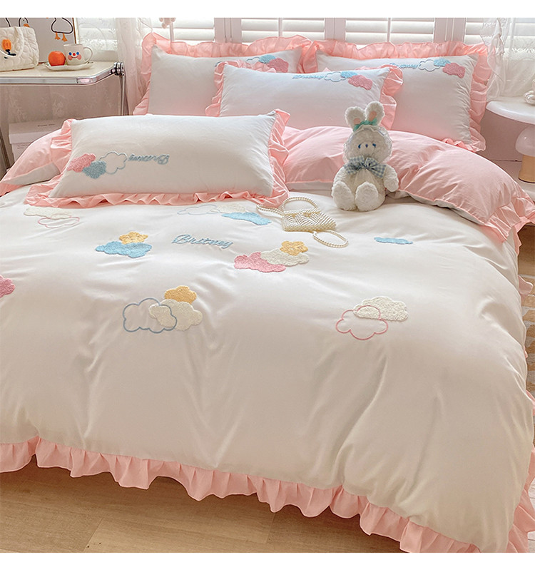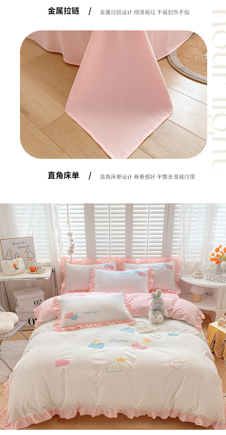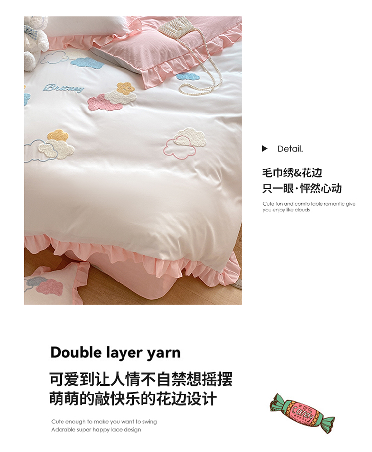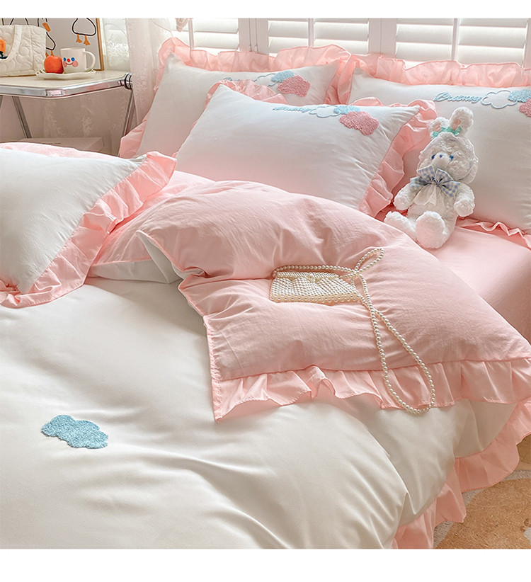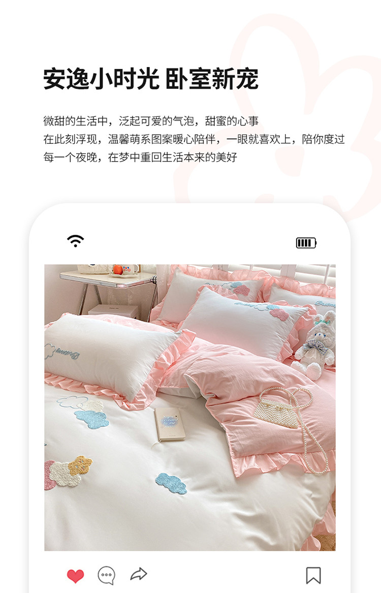 当前位置: 91家纺网 > 商品网购 > 床品套件 > 四件套 > 水洗棉四件套 > 易禾2022新款小清新水洗亲肤棉四件套七彩云朵 七彩云朵白粉