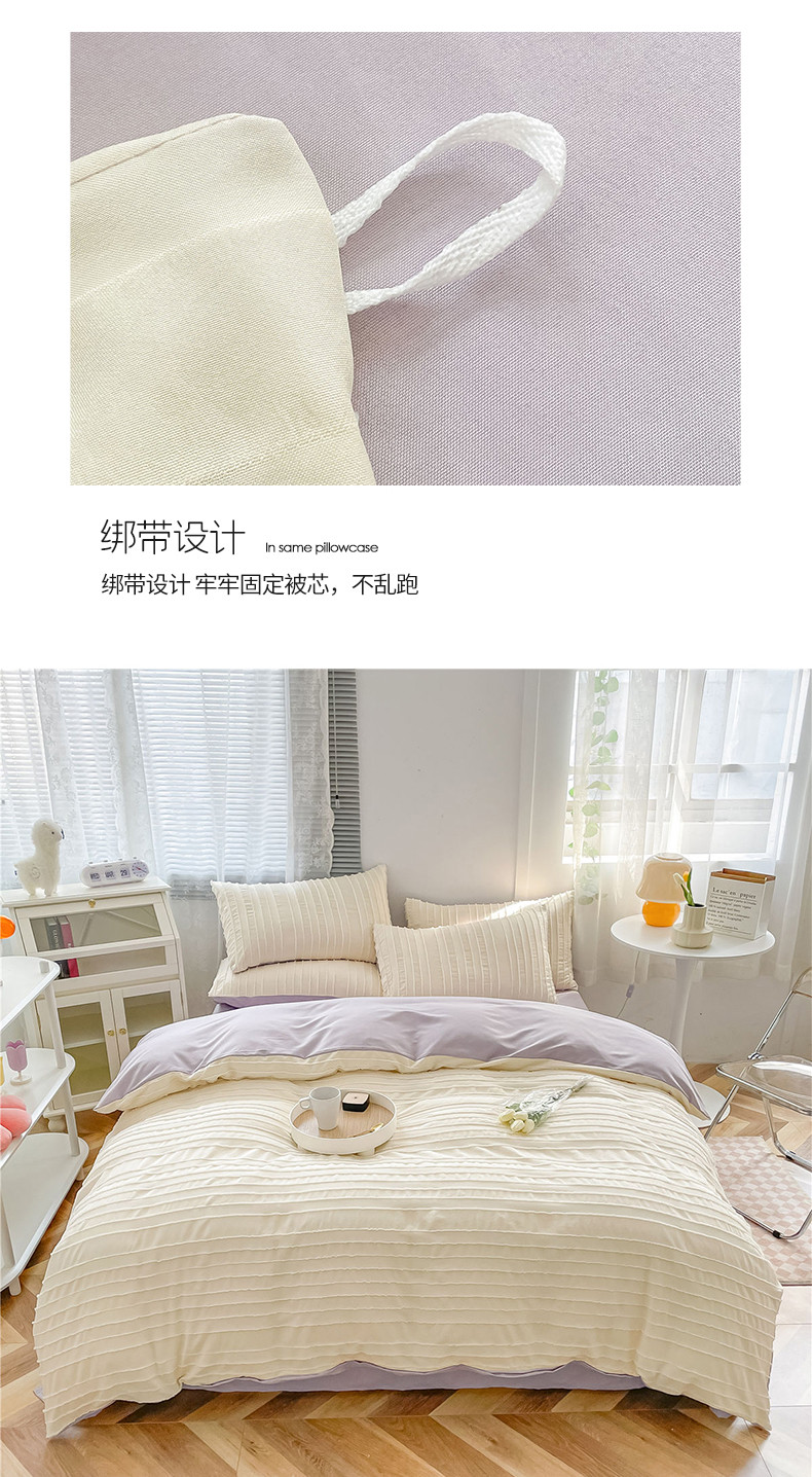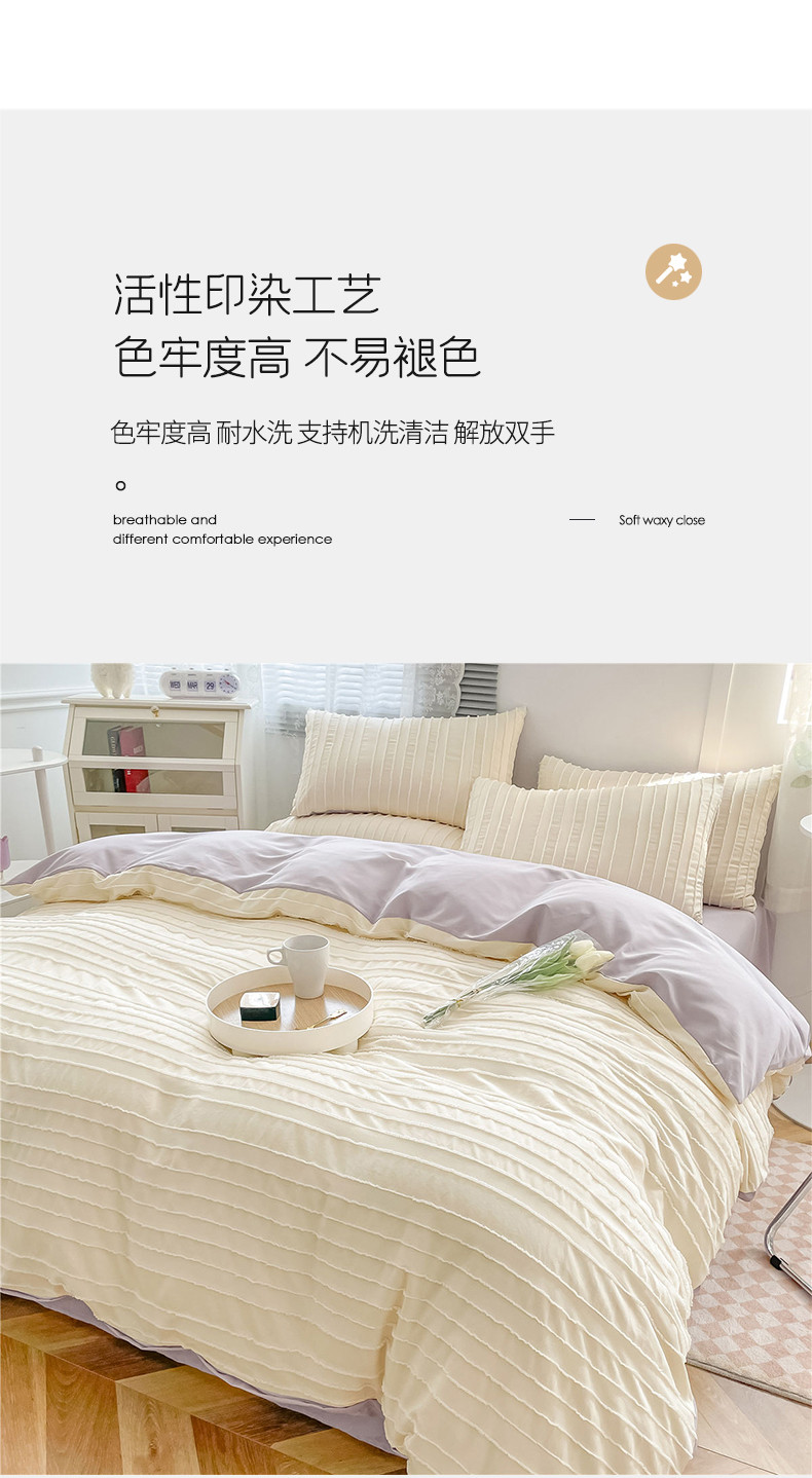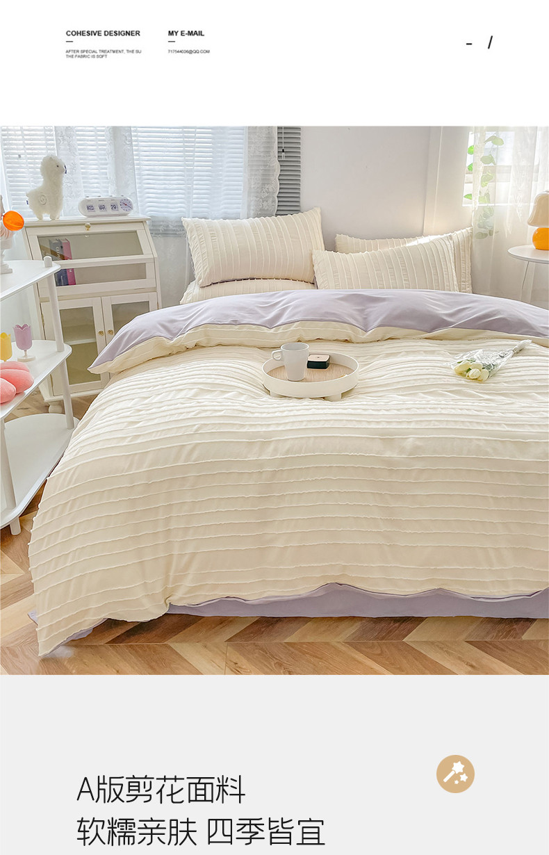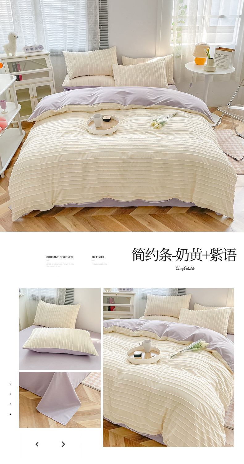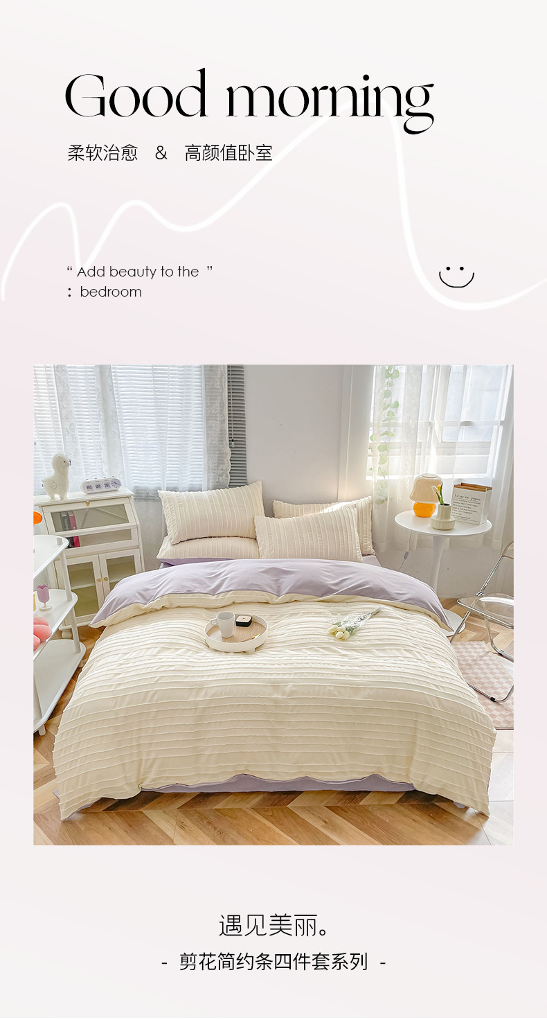 商品名称:古吉梦 2022新款剪花简约条系列四件套奶黄+紫语