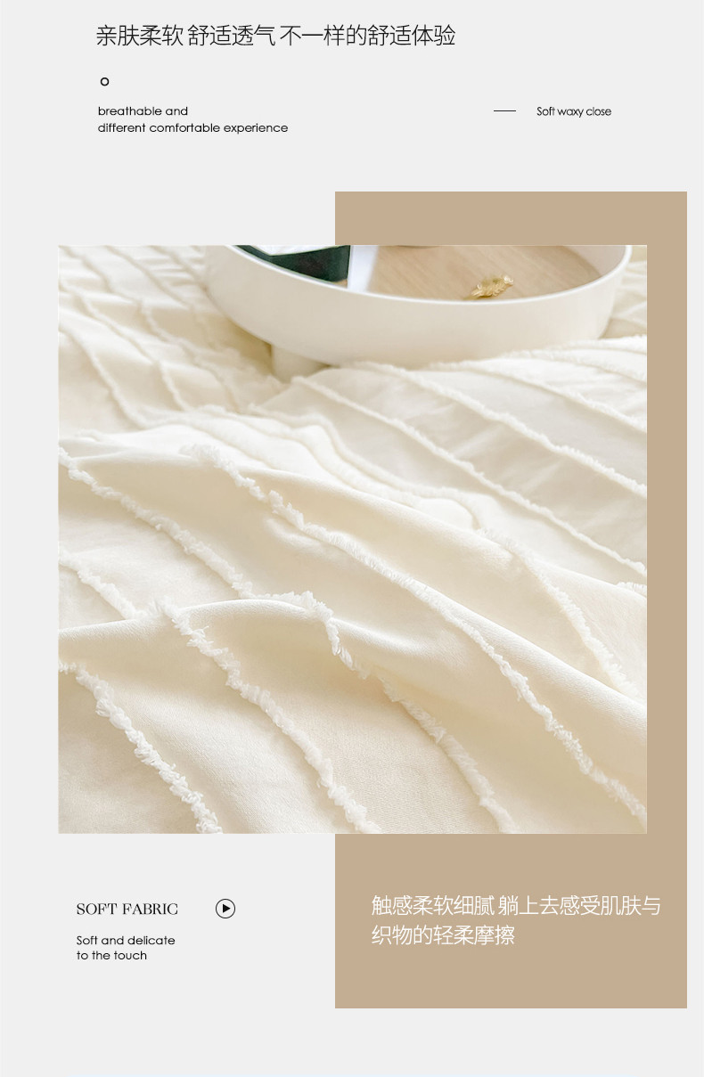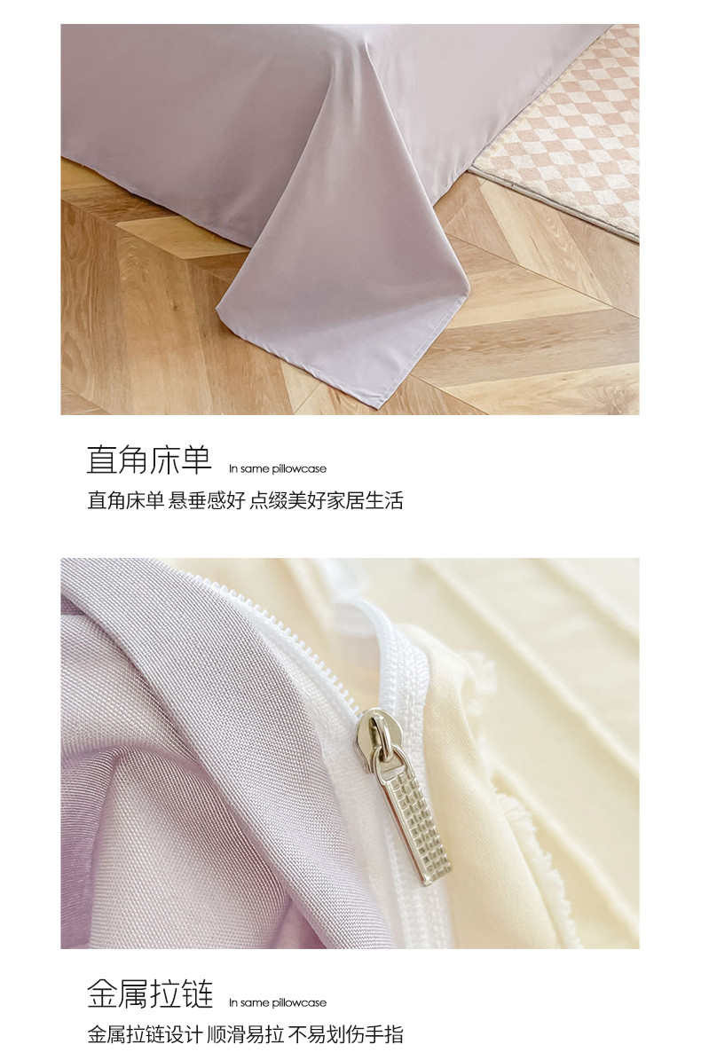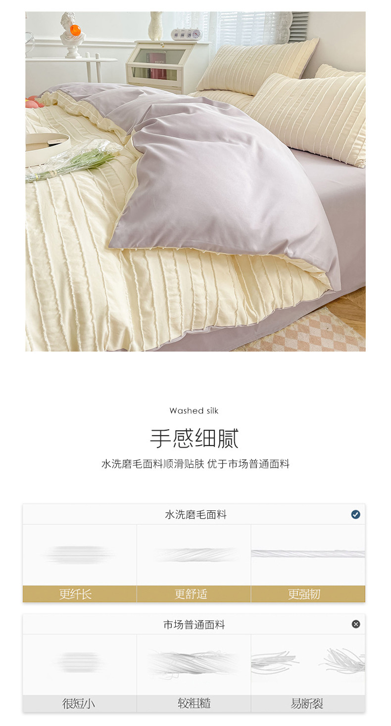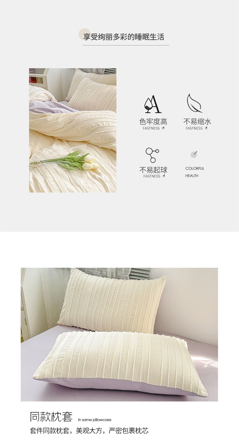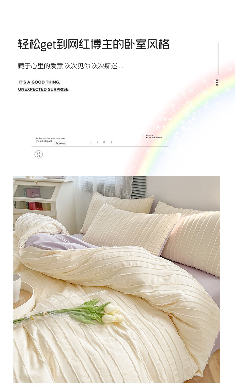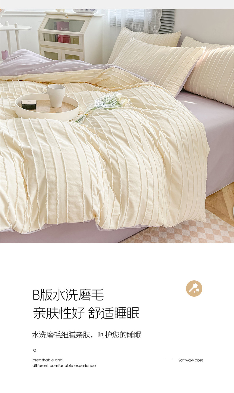 商品名称:古吉梦 2022新款剪花简约条系列四件套奶黄+紫语