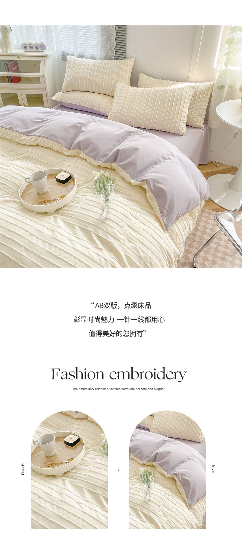 古吉梦 2022新款剪花简约条系列四件套奶黄+紫语