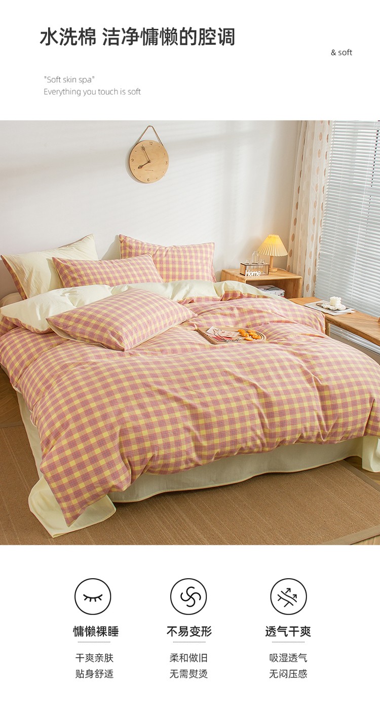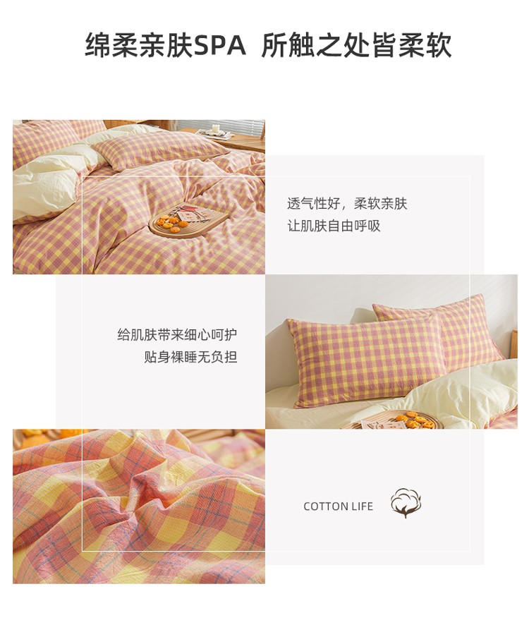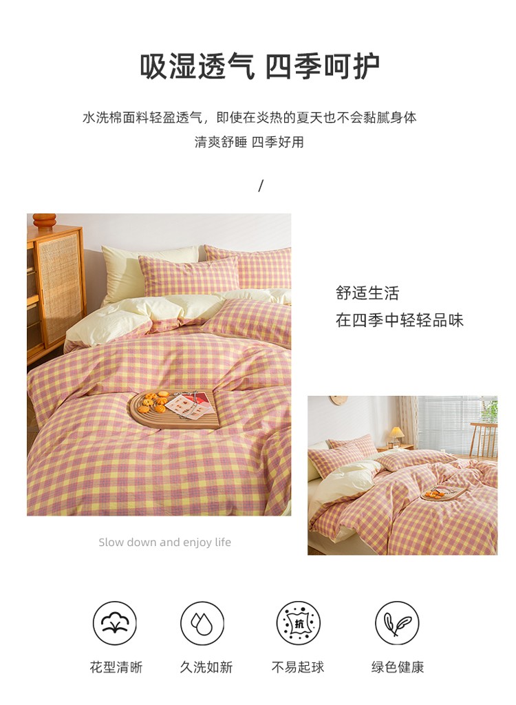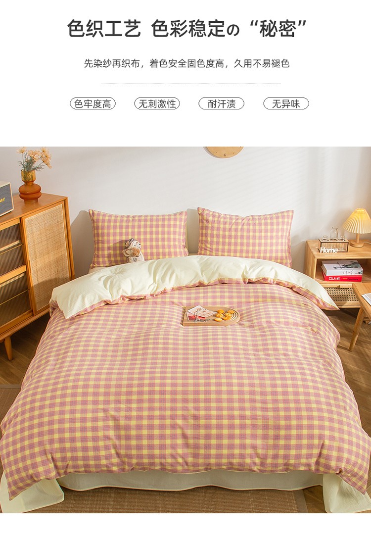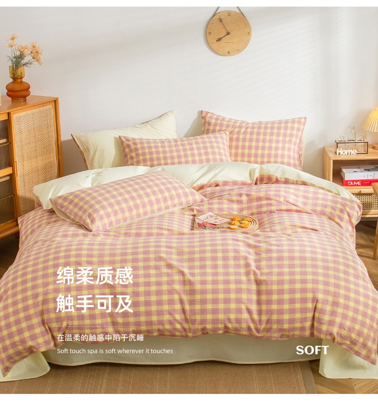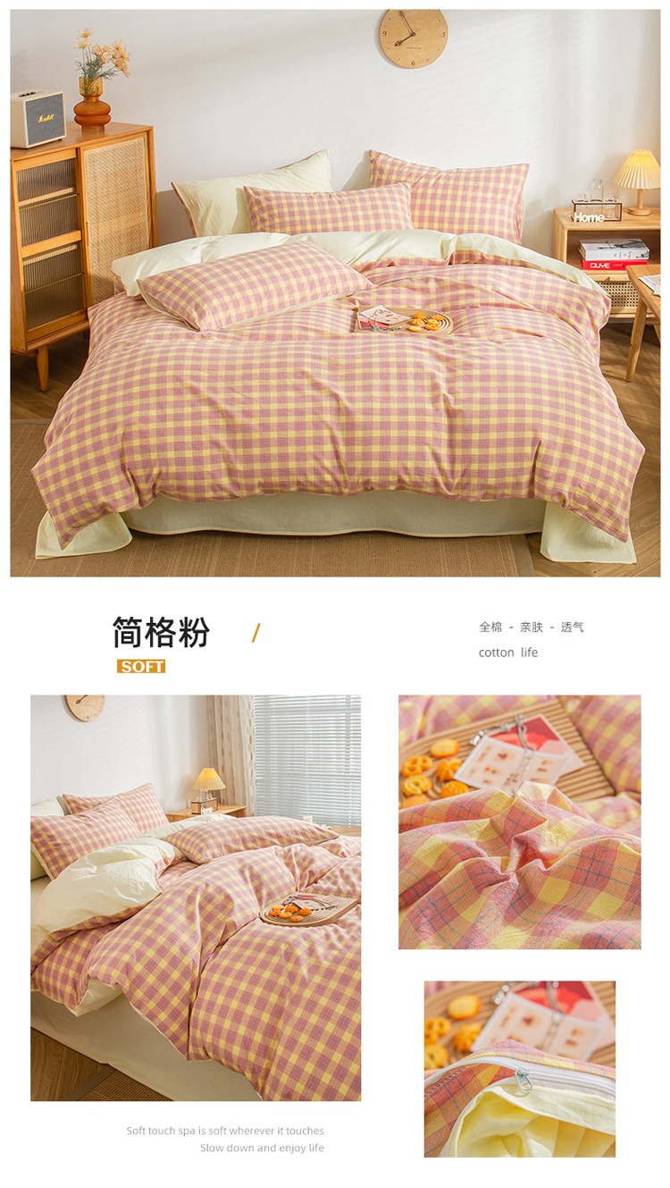 当前位置: 91家纺网 > 商品网购 > 床品套件 > 四件套 > 水洗棉四件套 > 柠萌家居 2022新A类全棉色织水洗棉无印风格四件套 简格粉
