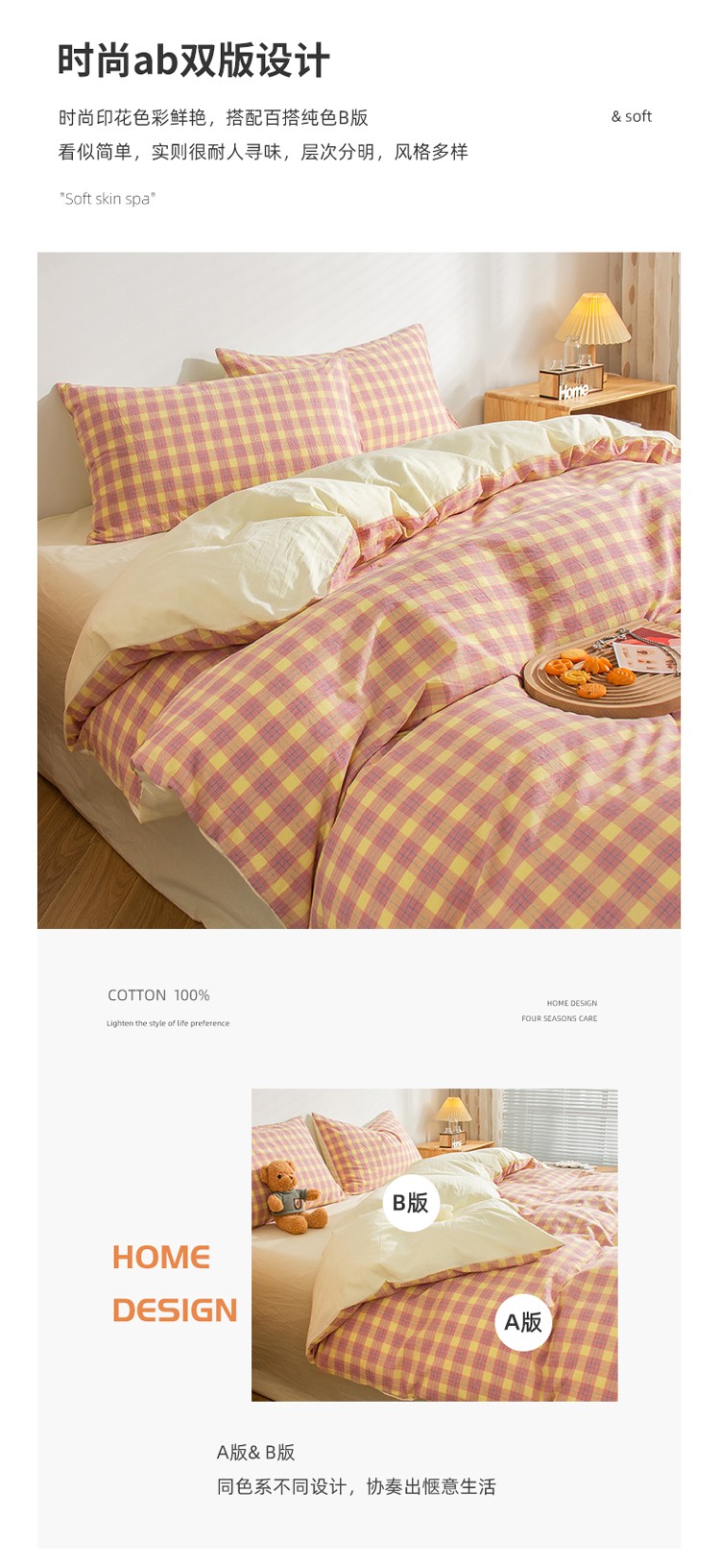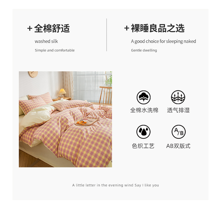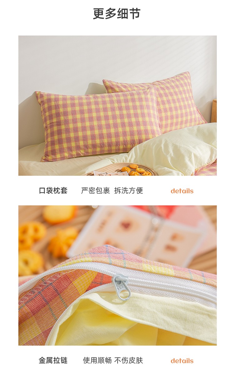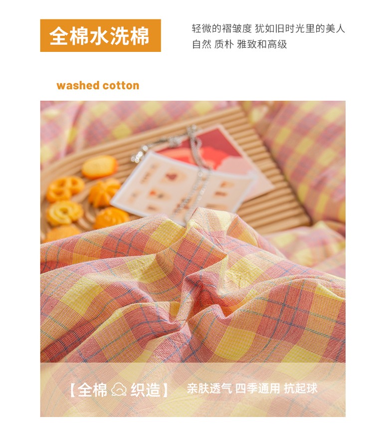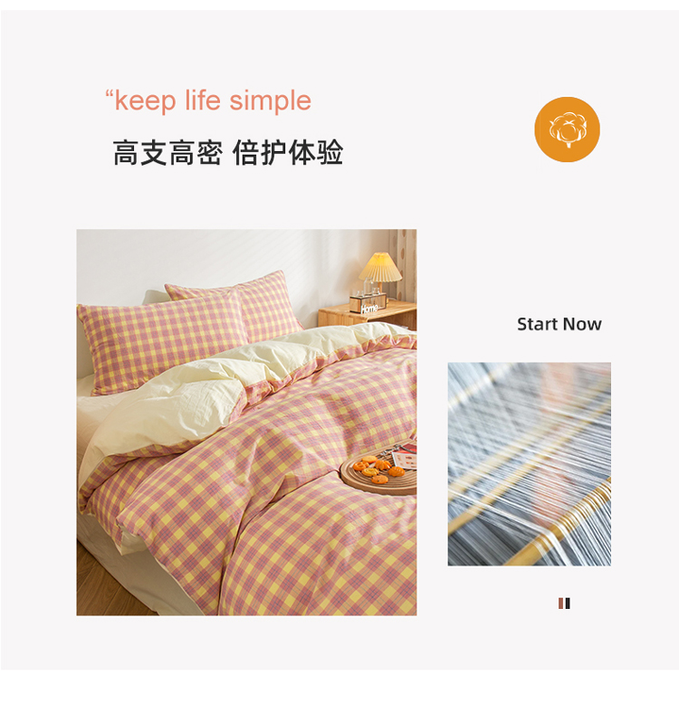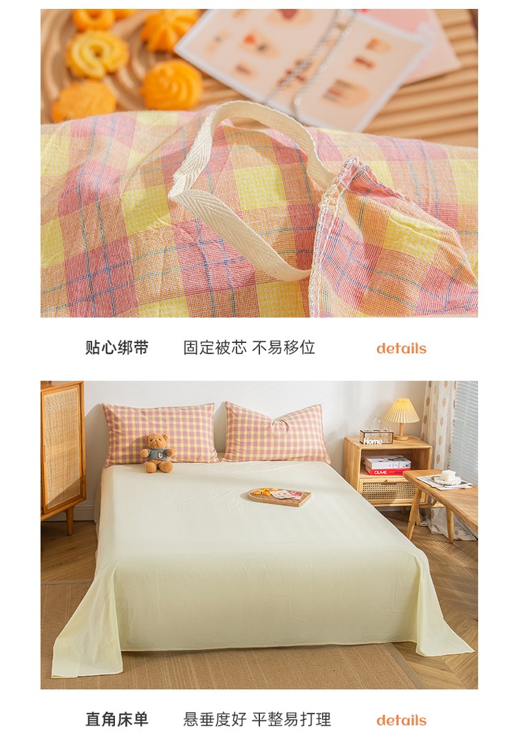 当前位置: 91家纺网 > 商品网购 > 床品套件 > 四件套 > 水洗棉四件套 > 柠萌家居 2022新A类全棉色织水洗棉无印风格四件套 简格粉