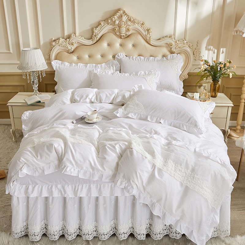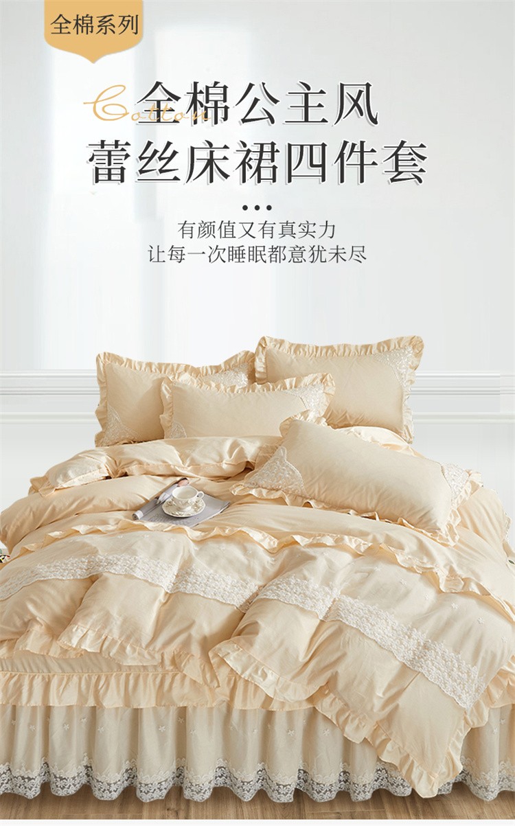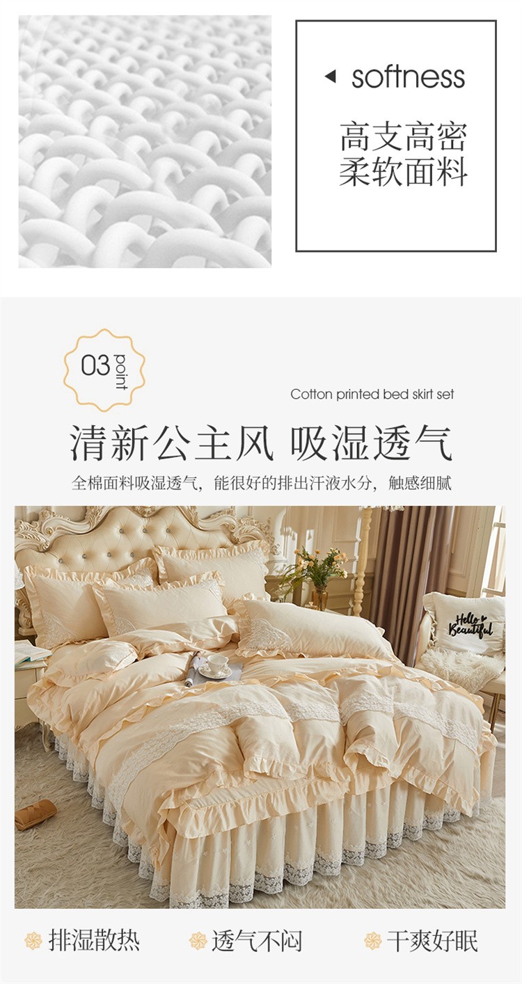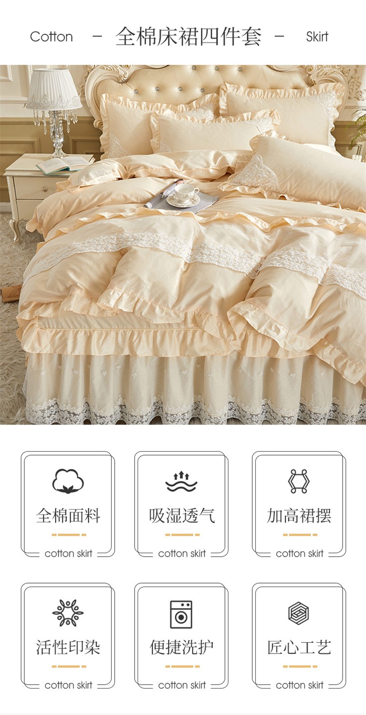 (总)十个点 2022新款纯色全棉公主风蕾丝花边床裙四件套