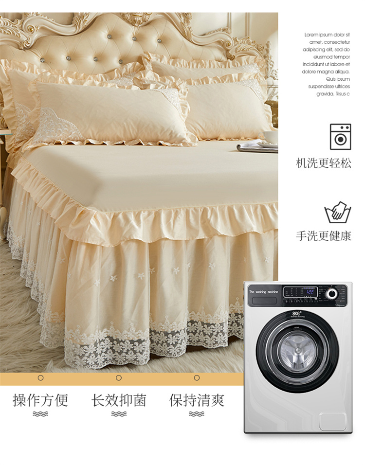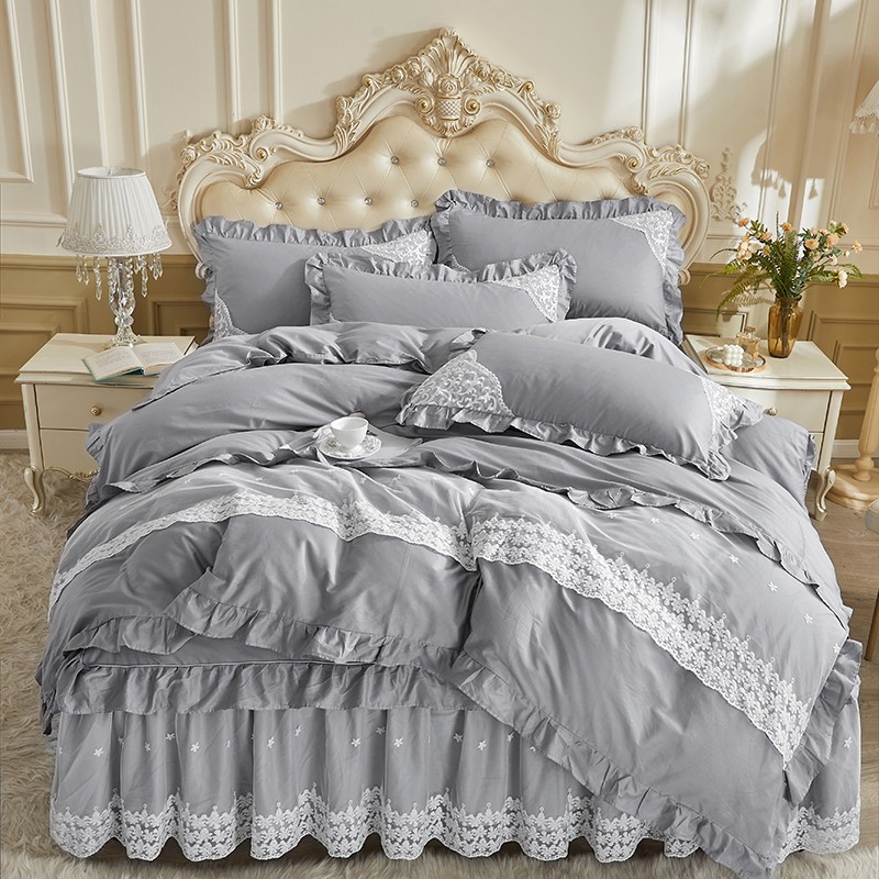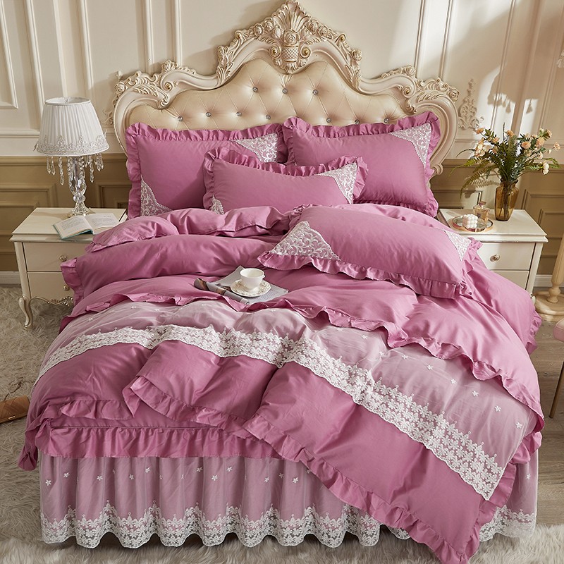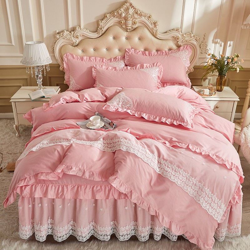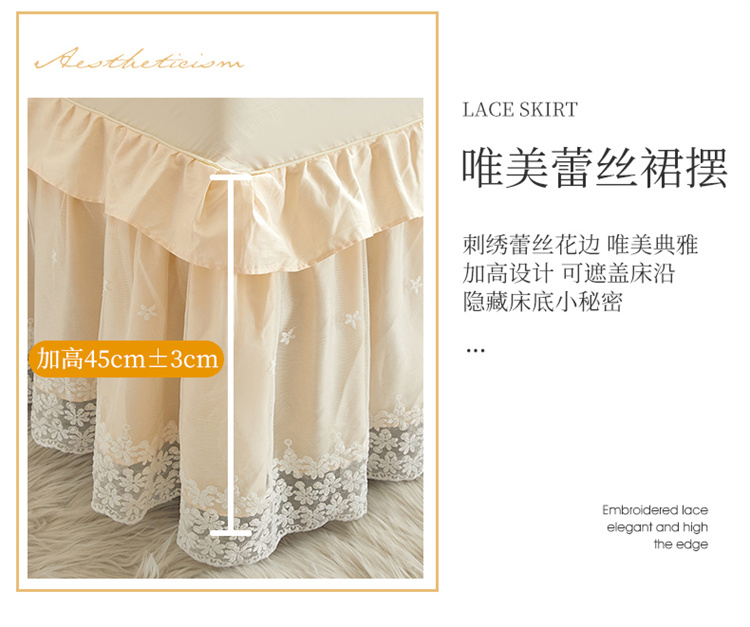 (总)十个点 2022新款纯色全棉公主风蕾丝花边床裙四件套
