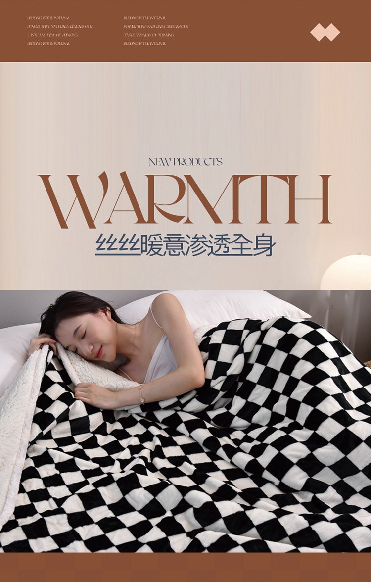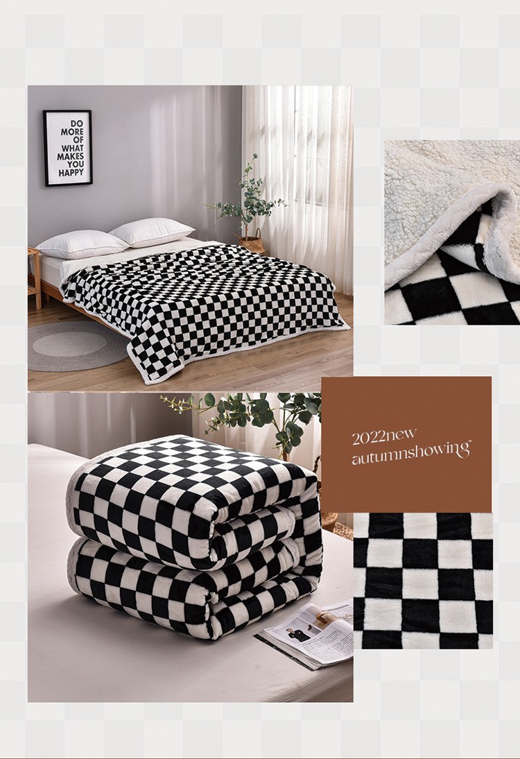 商品名称:爱她美 2022新款网红棋盘格羊羔绒毯盖毯毛毯 棋盘格黑