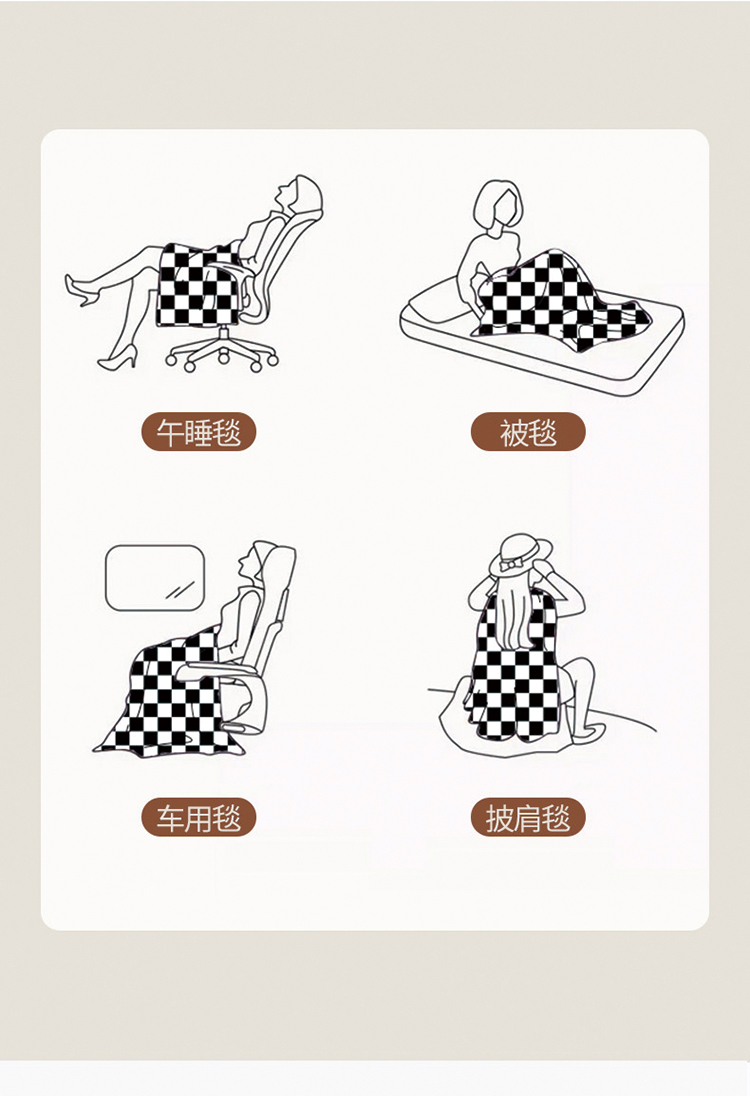 (总)爱她美 2022新款法莱绒多功能披肩毯,黑白棋盘格