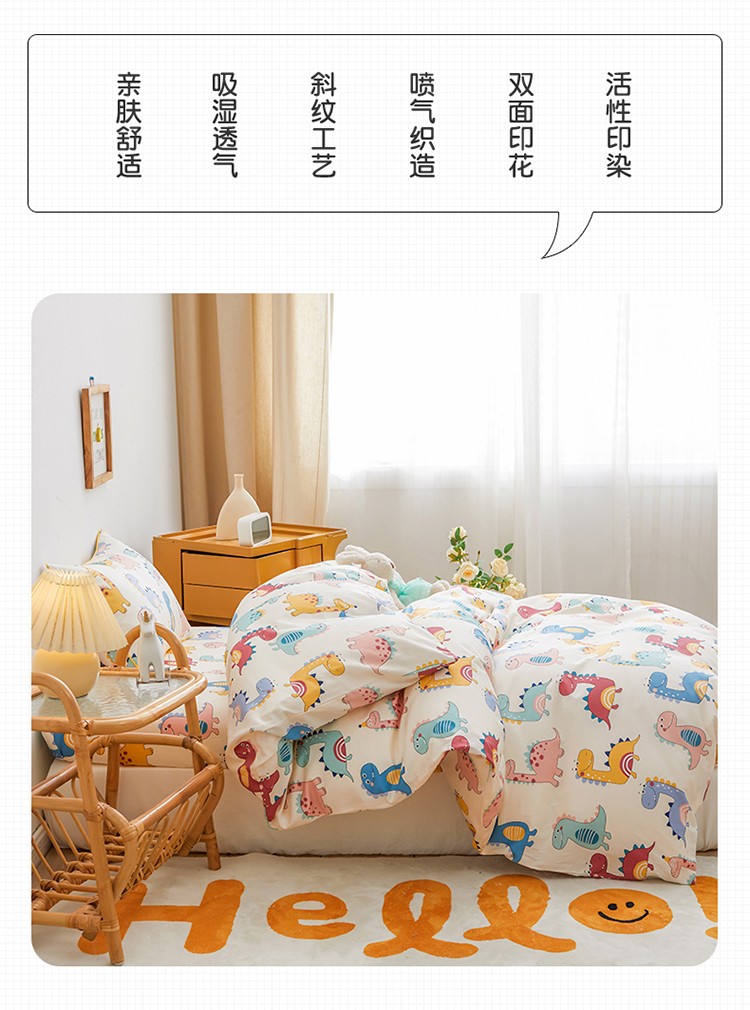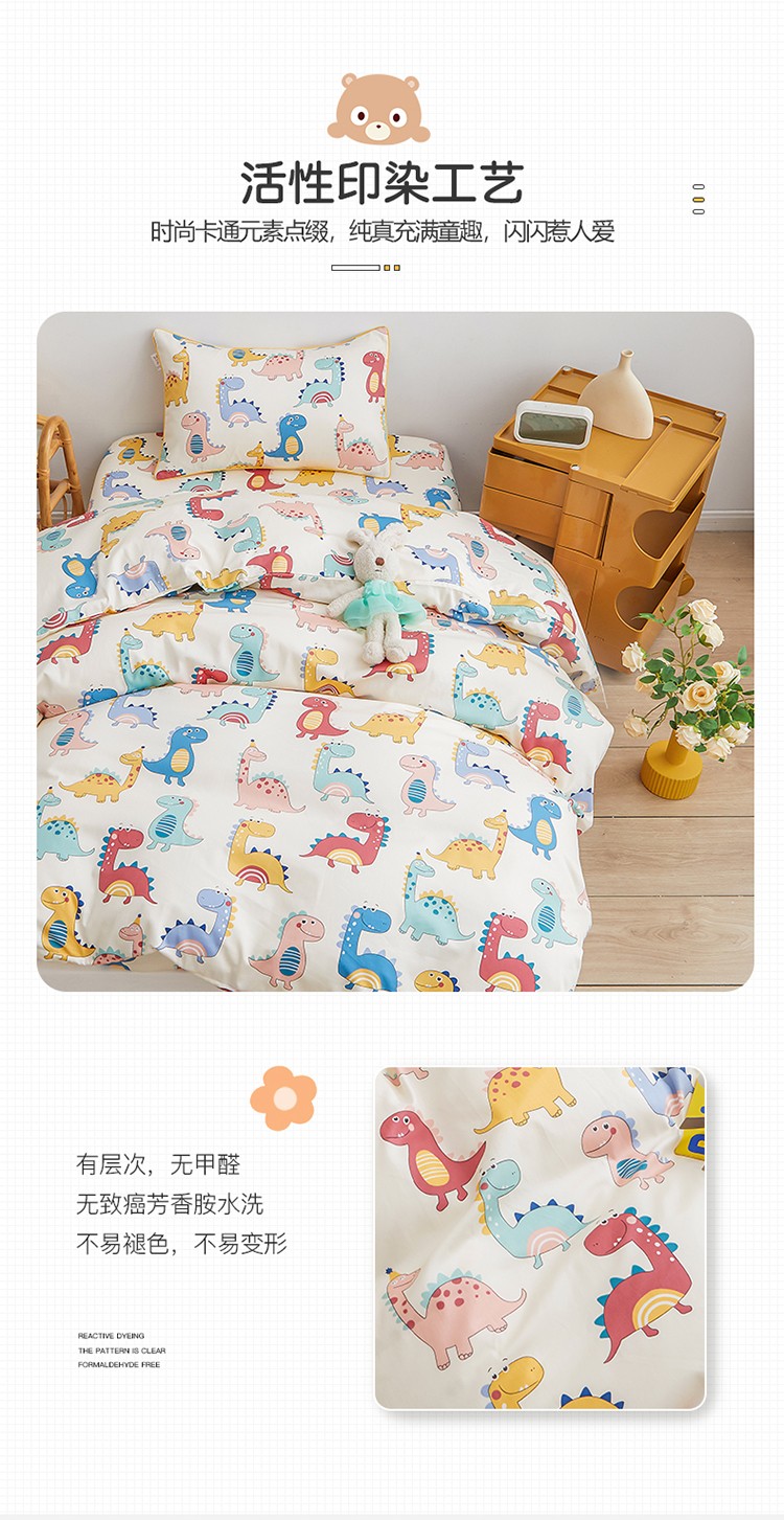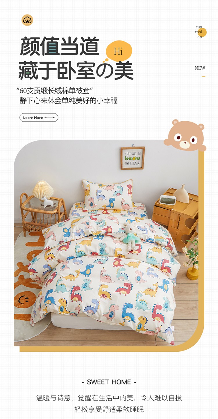 商品名称:ds生活馆 2025新款儿童60支贡缎长绒棉单被套(定制) 快乐恐龙