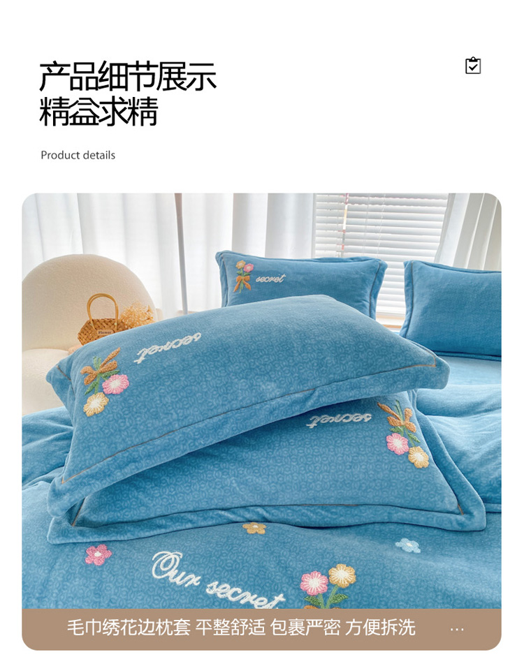 商品名称:云锦22新肌理纹高克重200克牛奶绒毛巾绣四件套花开朵朵湖蓝