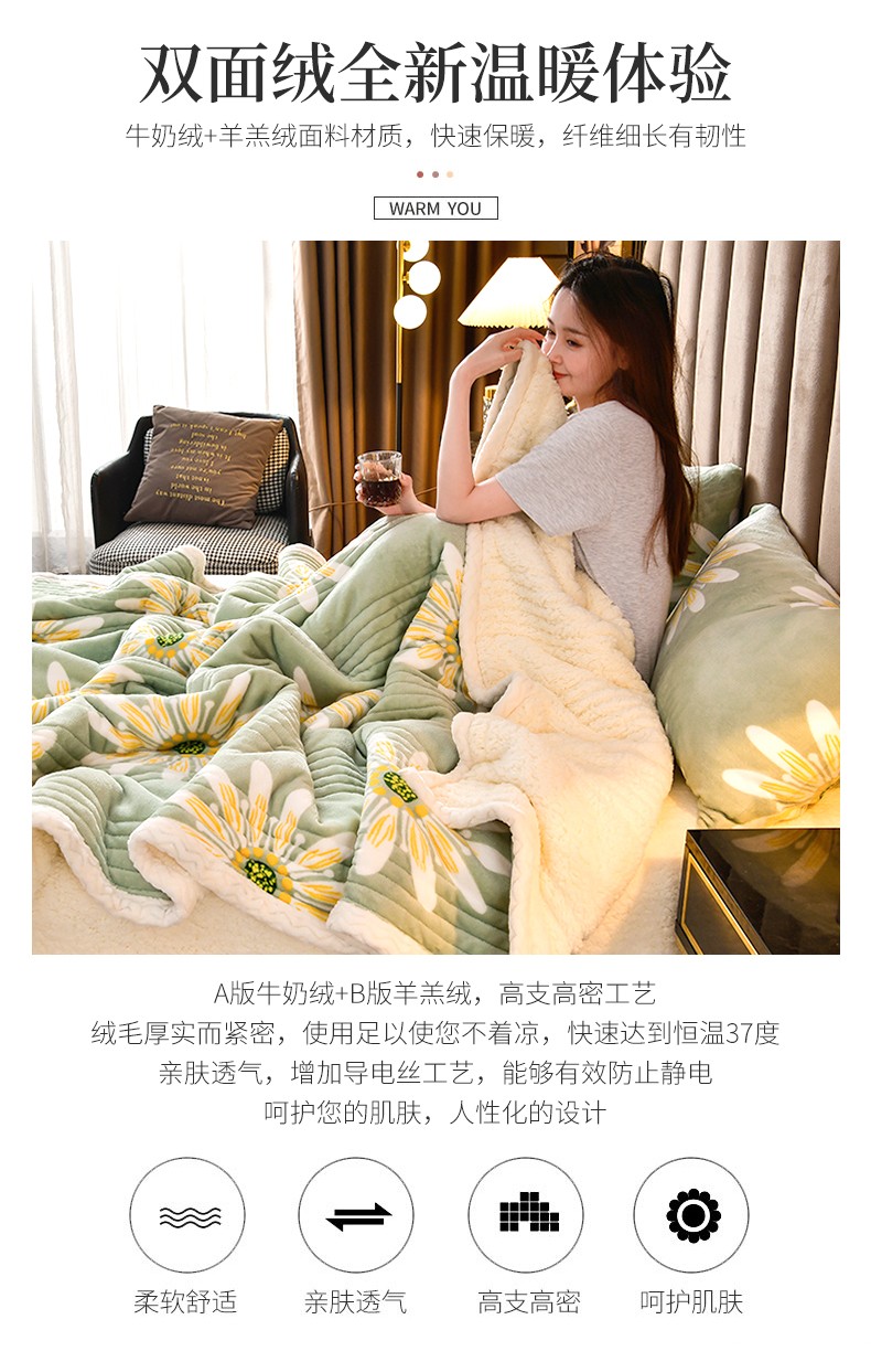 (总)圣楚2024双面绒羊羔绒牛奶绒毛毯多功能午睡毯盖毯直播