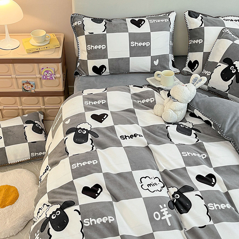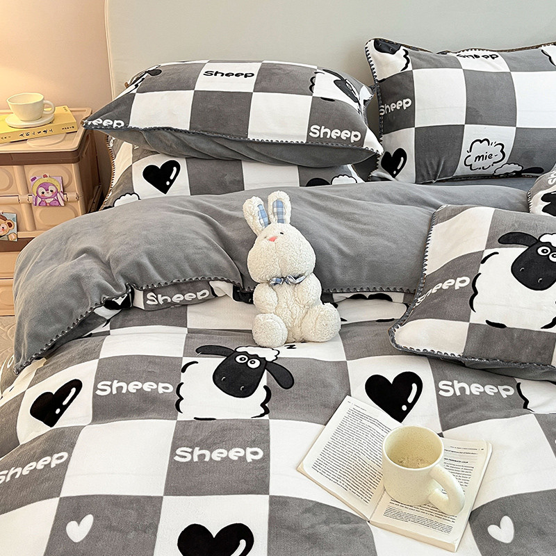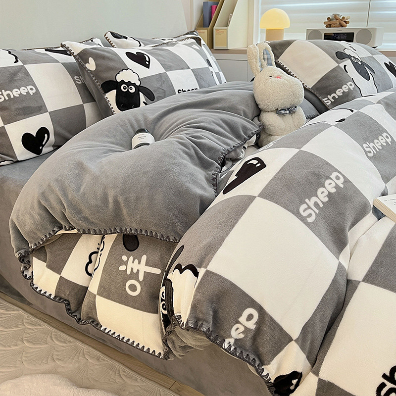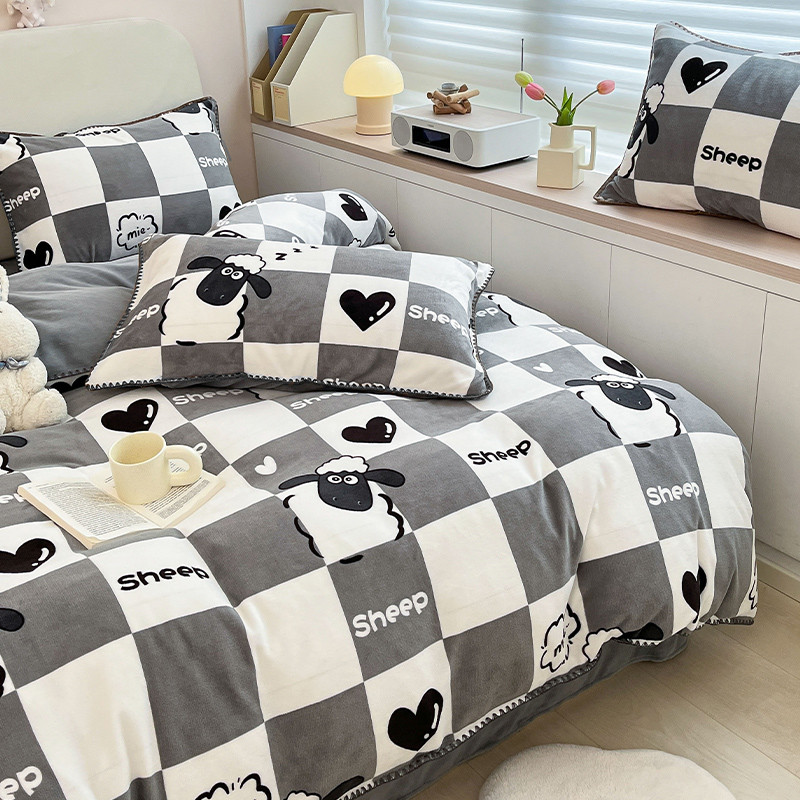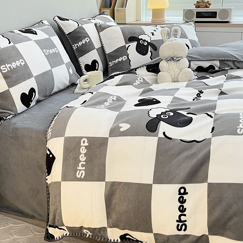 当前位置: 91家纺网 > 商品网购 > 床品套件 > 四件套 > 牛奶绒四件套 > 安哆啦 新款贝壳边工艺牛奶绒珊瑚绒四件套单被套 格子羊咩咩