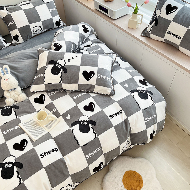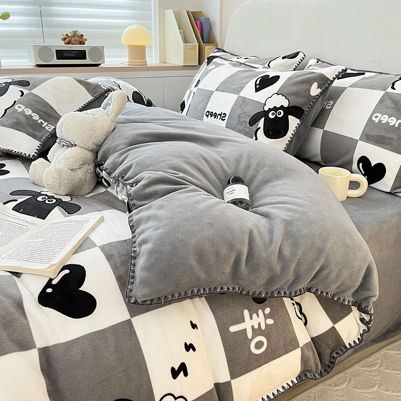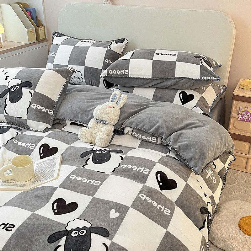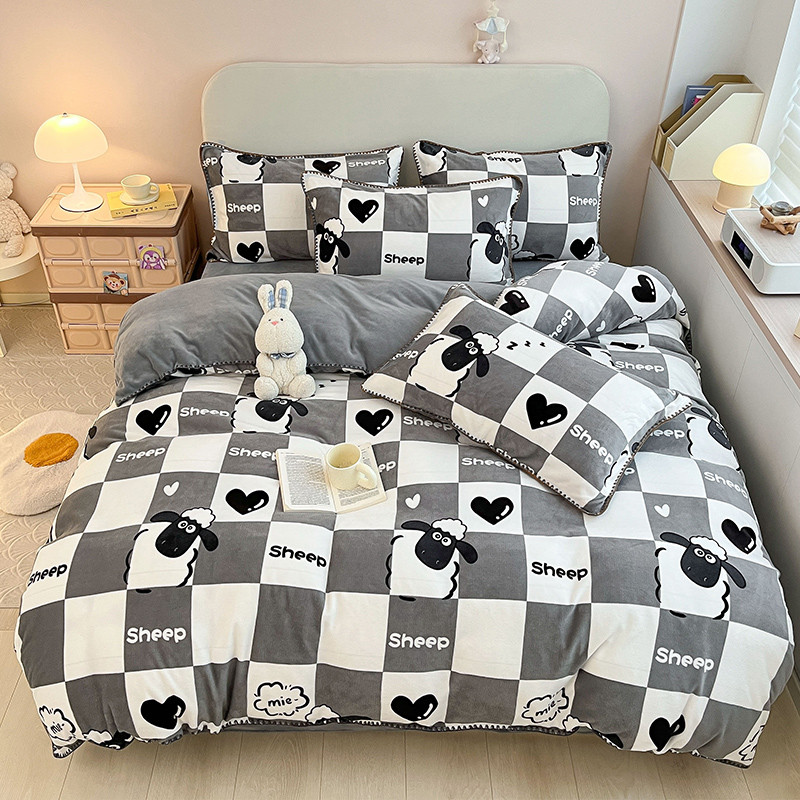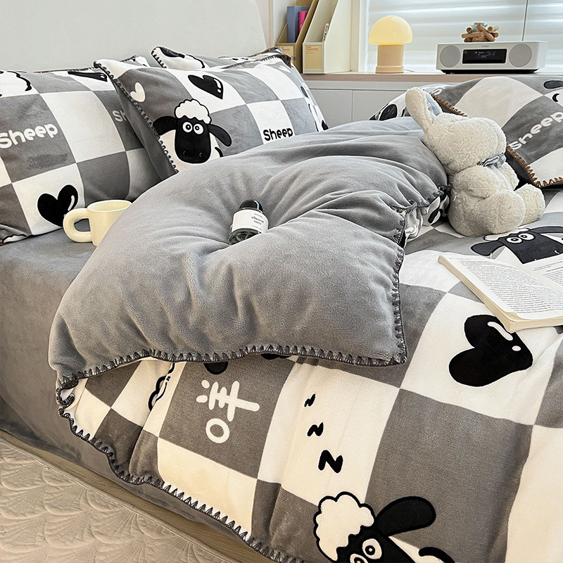 当前位置: 91家纺网 > 商品网购 > 床品套件 > 四件套 > 牛奶绒四件套 > 安哆啦 新款贝壳边工艺牛奶绒珊瑚绒四件套单被套 格子羊咩咩
