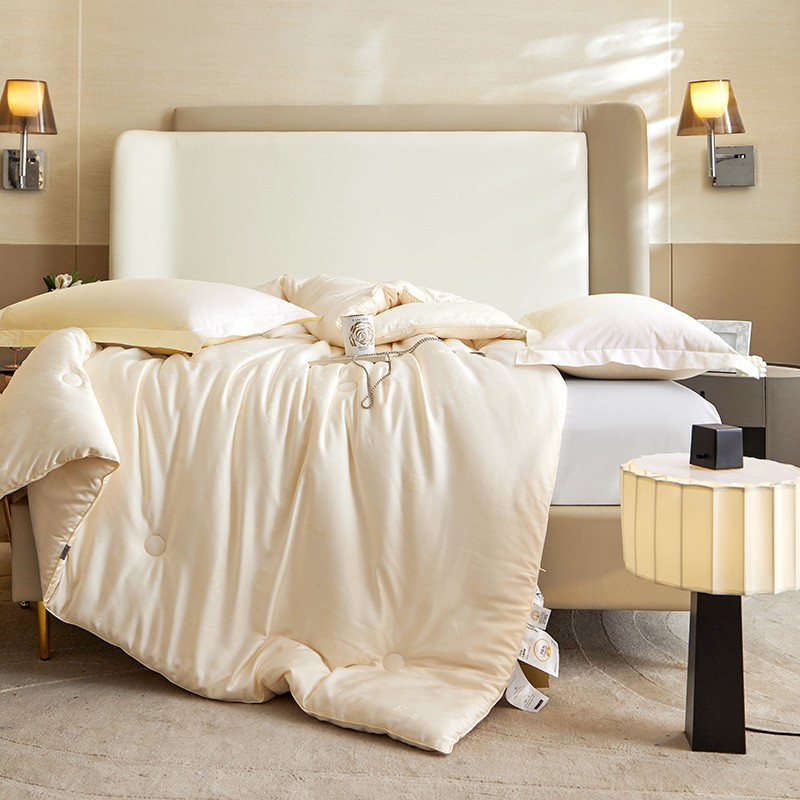 (总)A+爱家 2025新款彩丝提花双宫桑蚕丝被芯桑蚕丝空调被,白色