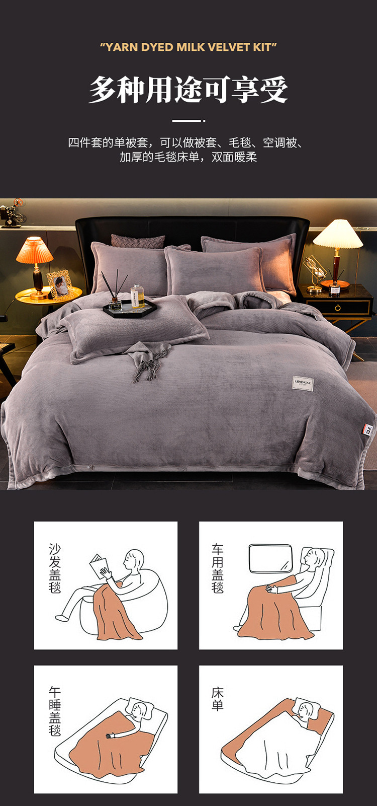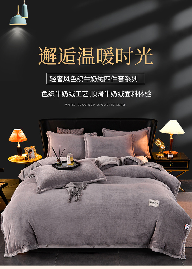 当前位置: 91家纺网 > 商品网购 > 床品套件 > 四件套 > 牛奶绒四件套 > 小牛席业 2022新款色织牛奶绒四件套 色织牛奶绒(灰色)