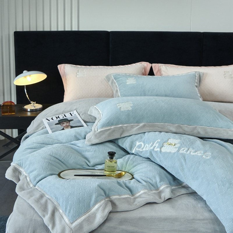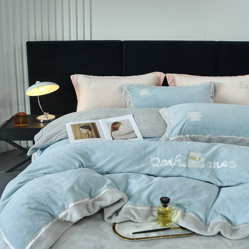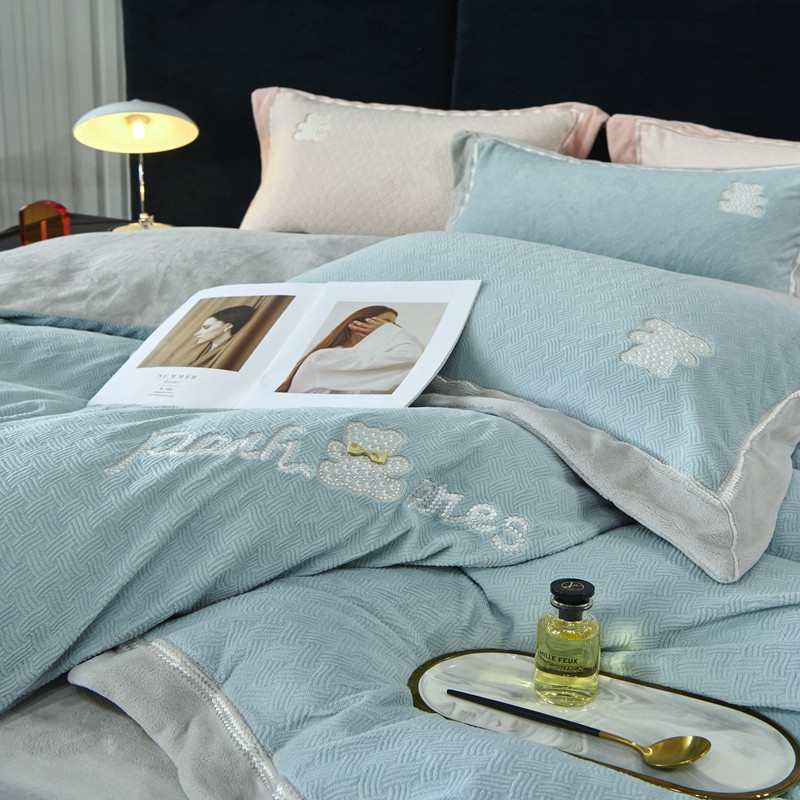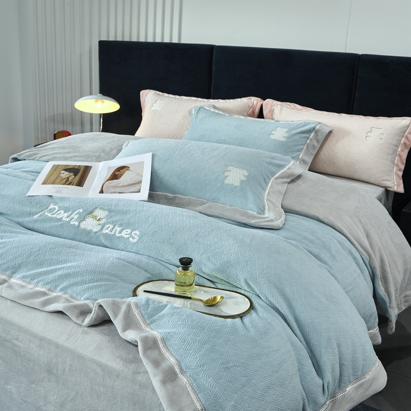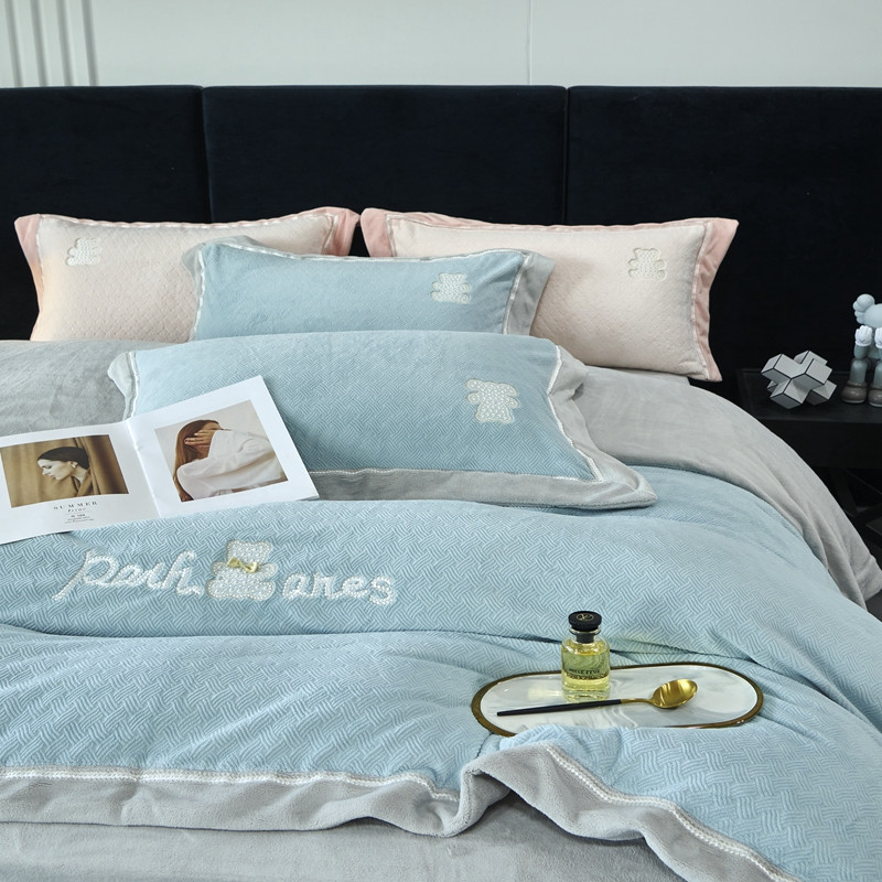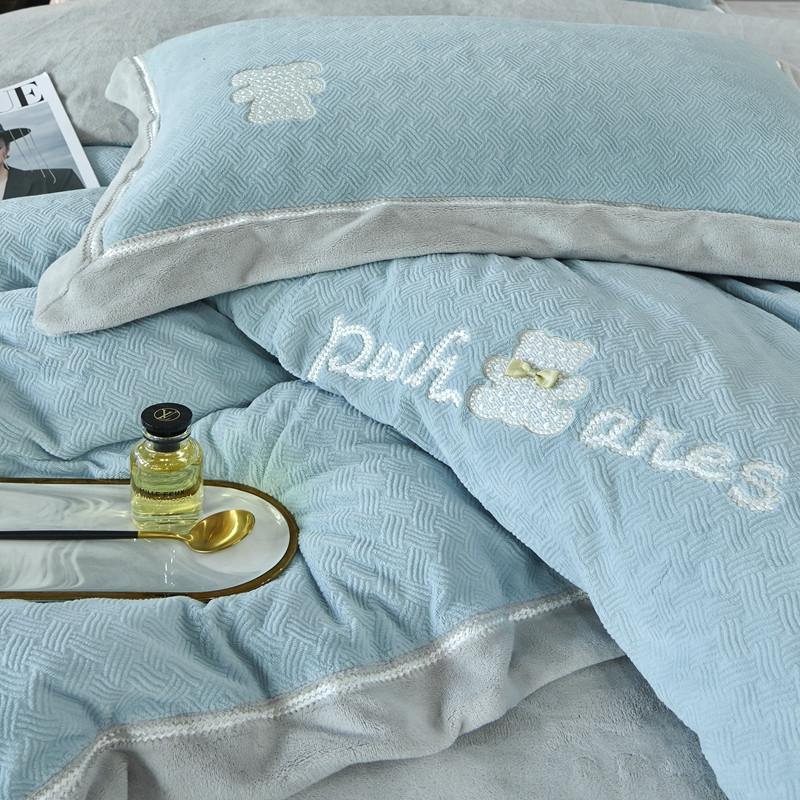 榻尚家居 2023新款奈思小熊牛奶绒四件套 蓝色