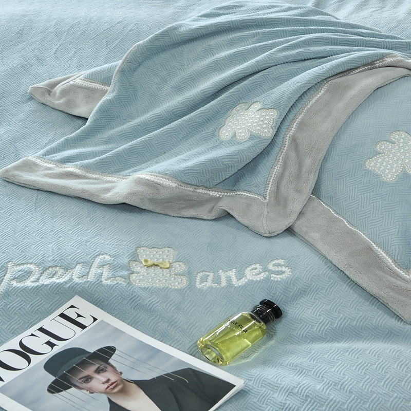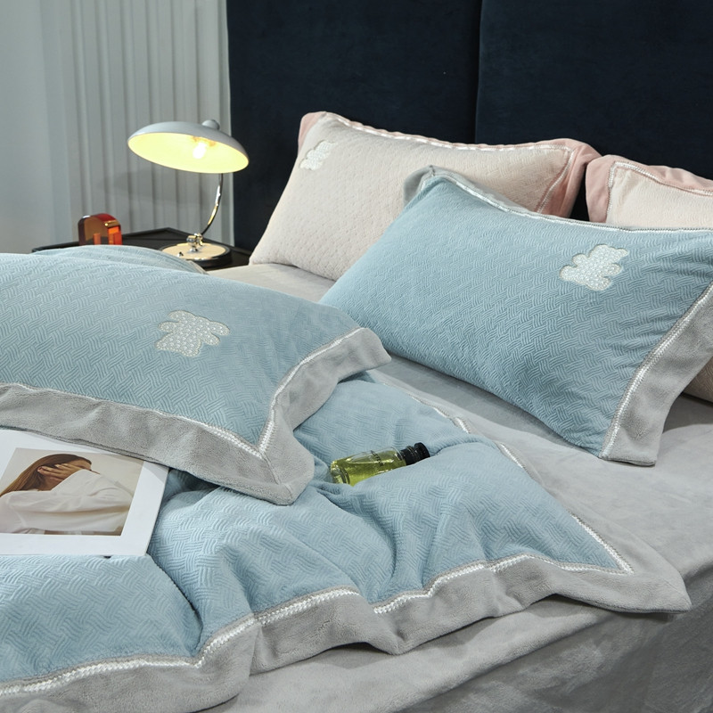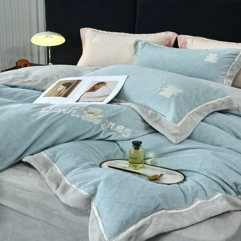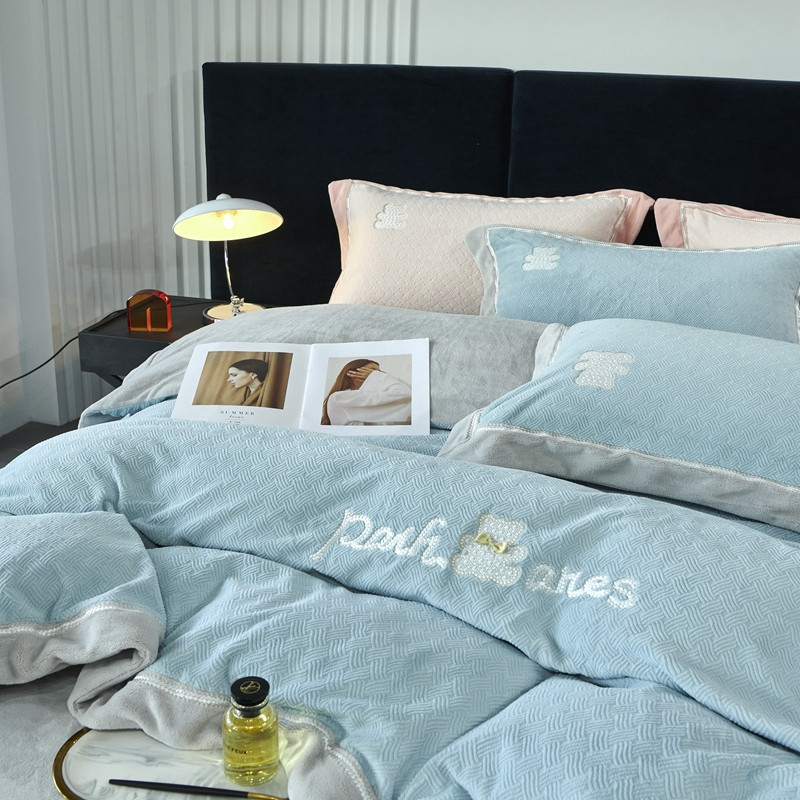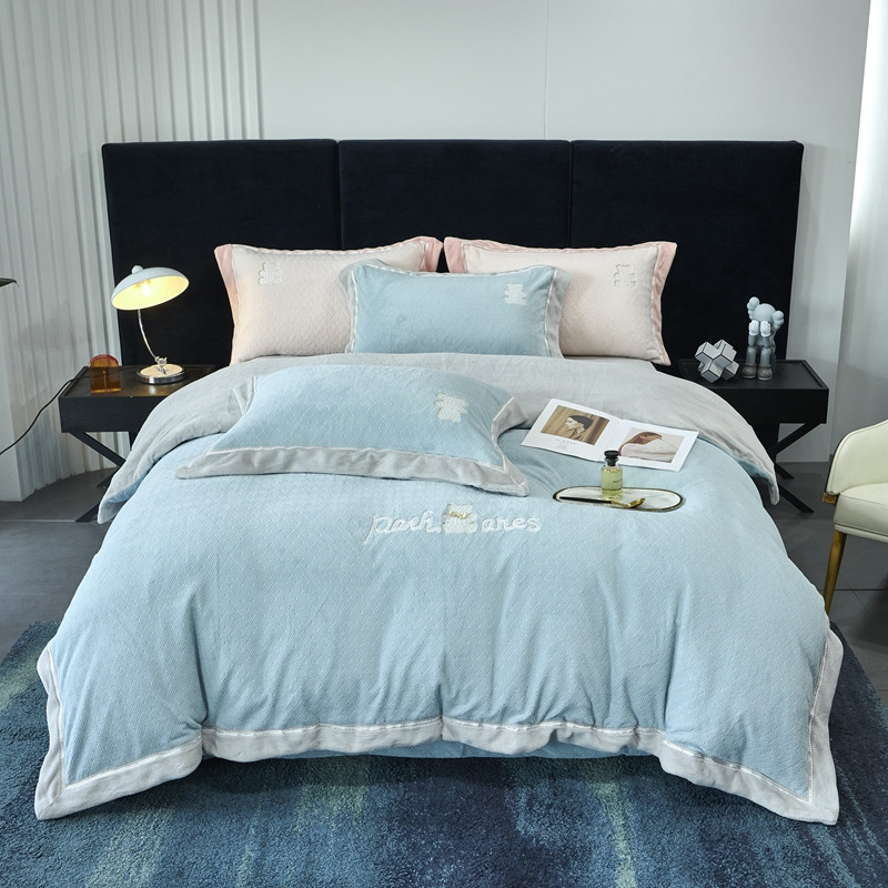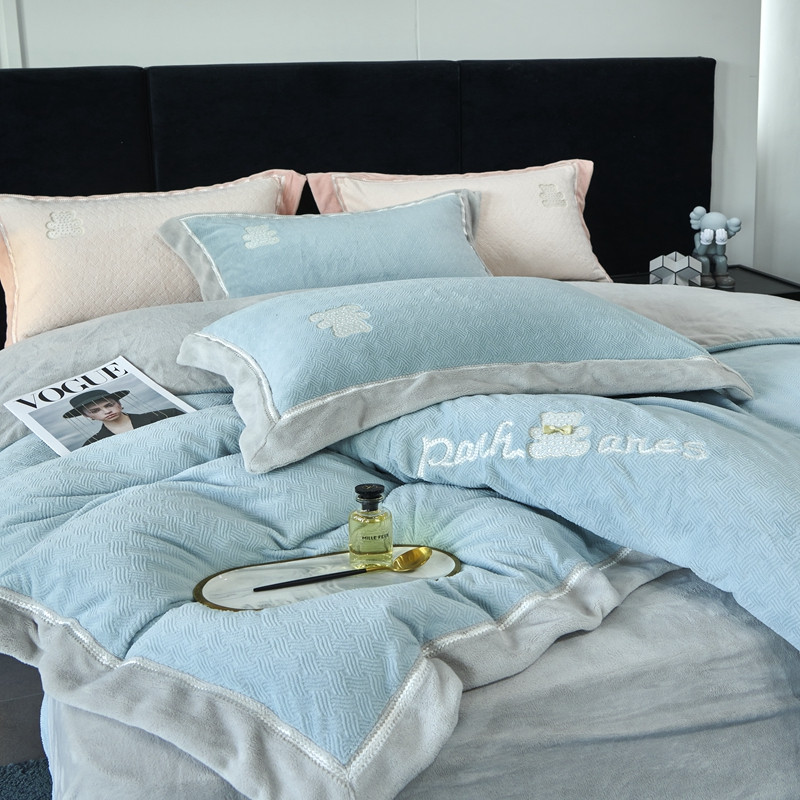 榻尚家居 2023新款奈思小熊牛奶绒四件套 蓝色