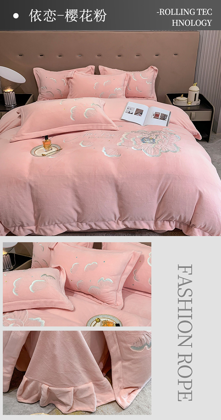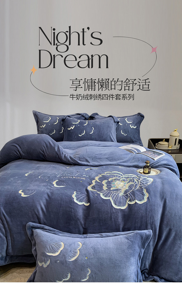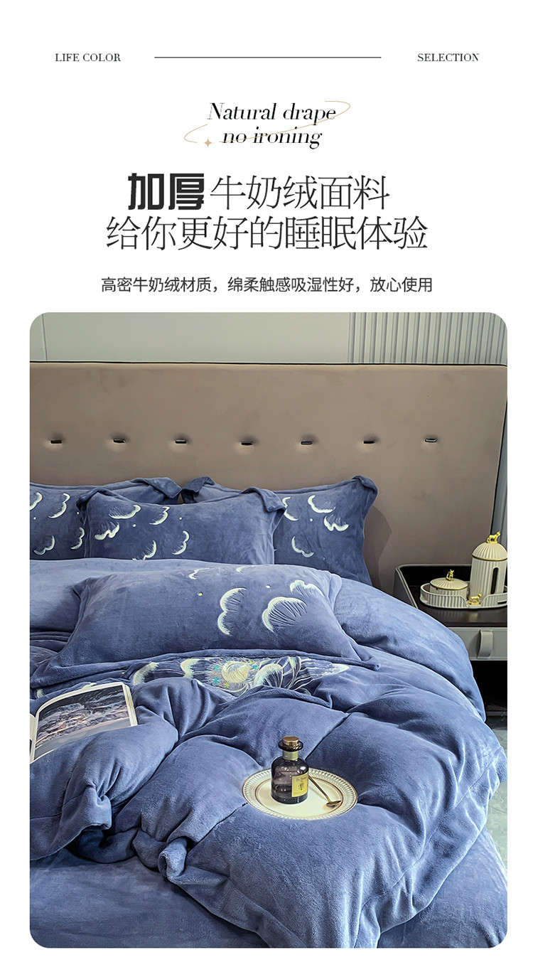 当前位置: 91家纺网 > 商品网购 > 床品套件 > 四件套 > 牛奶绒四件套 > 总芯贝儿2022轻奢加厚保暖雕花牛奶绒绣花宝宝法莱绒四件套