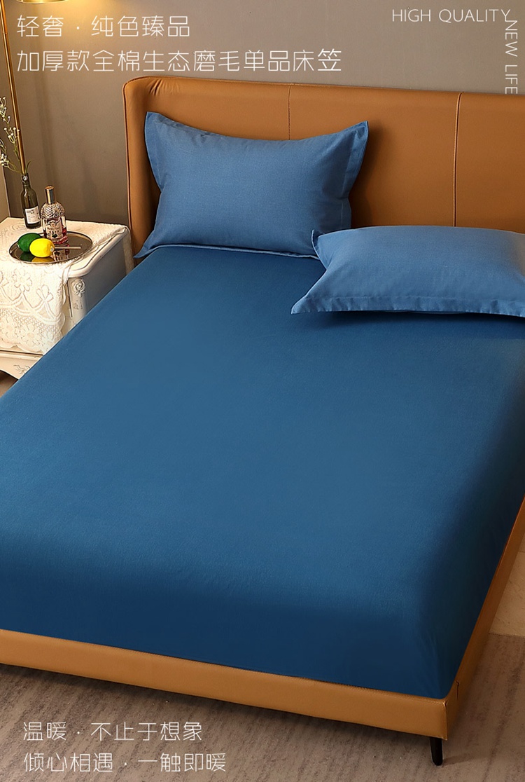 晶缦家纺 2022新款加厚全棉纯色生态磨毛多规格系列单床笠 纯依-宾利蓝